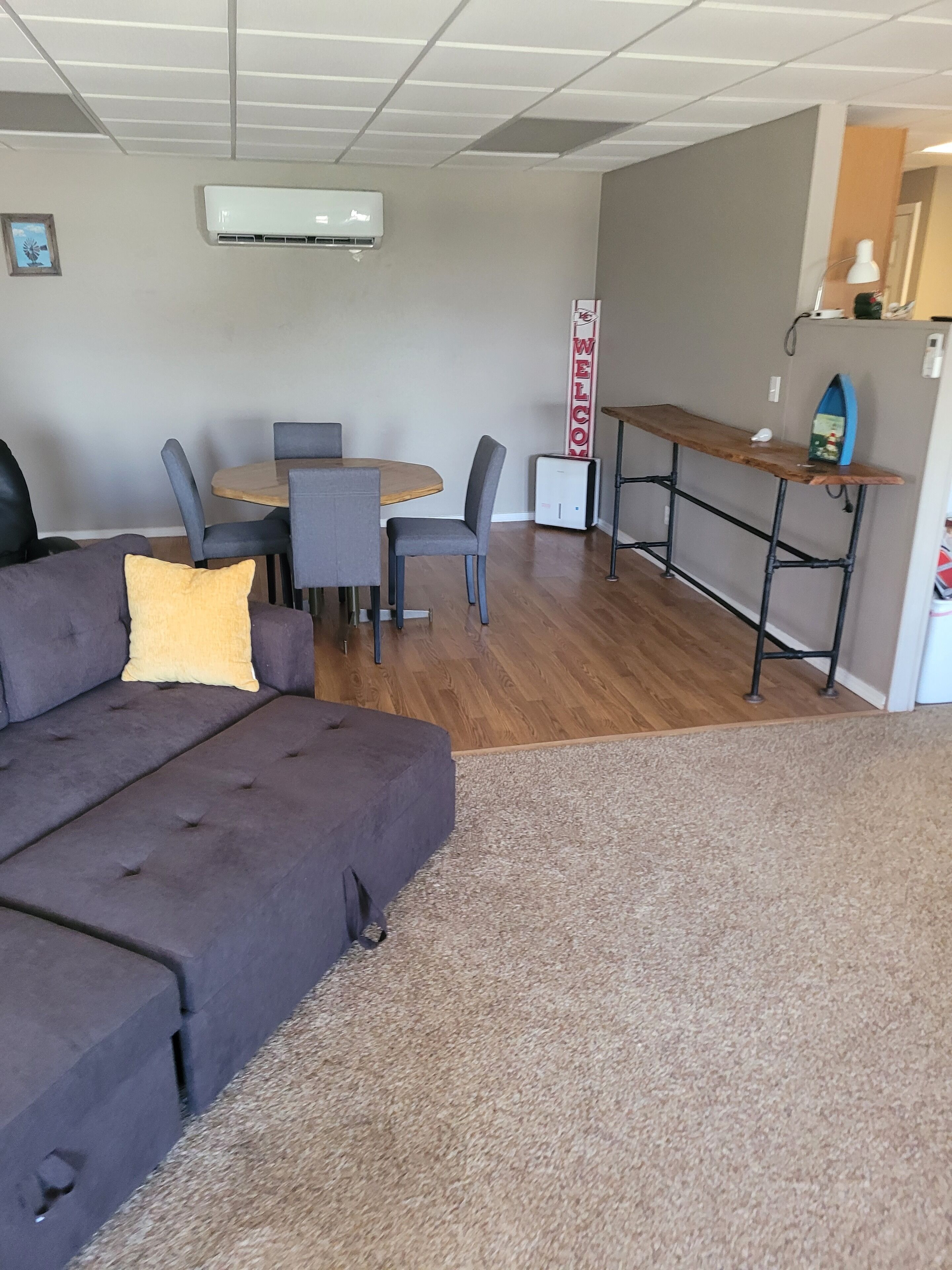 The finished walkout basement offers a spacious, versatile area with two King-sized beds in an open layout, ideal for extra guests or a cozy shared space. Additionally, there is a Basement Bedroom with another Queen-sized bed, designed for ultimate relaxation and privacy. The basement includes a full bathroom and a large storage area, making it an incredibly functional space that meets all your needs during your stay.