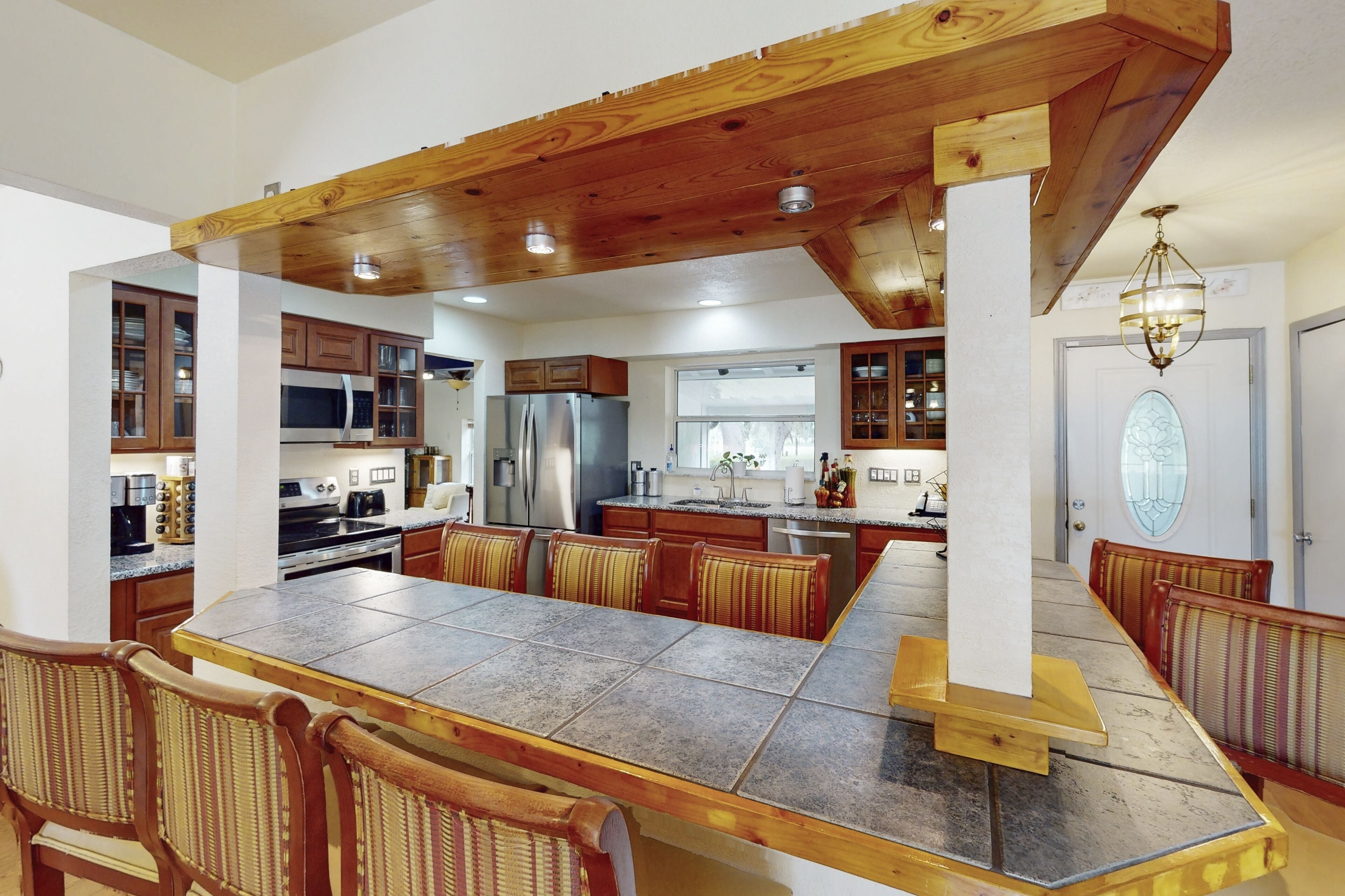 Fully furnished with indoor and outdoor dining, two grills, TV and free Wi-Fi. Kitchen is fully stocked for all your needs.