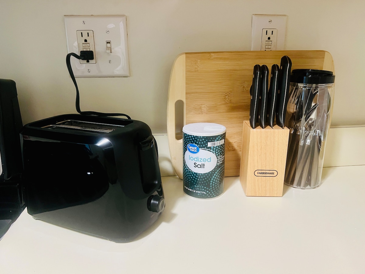 Shared kitchen stocked with cooking essentials such as pans, dishes, utensils, a stove, microwave, and refrigerator. Whether you’re preparing a full meal or just making coffee, the space is available for your use.
