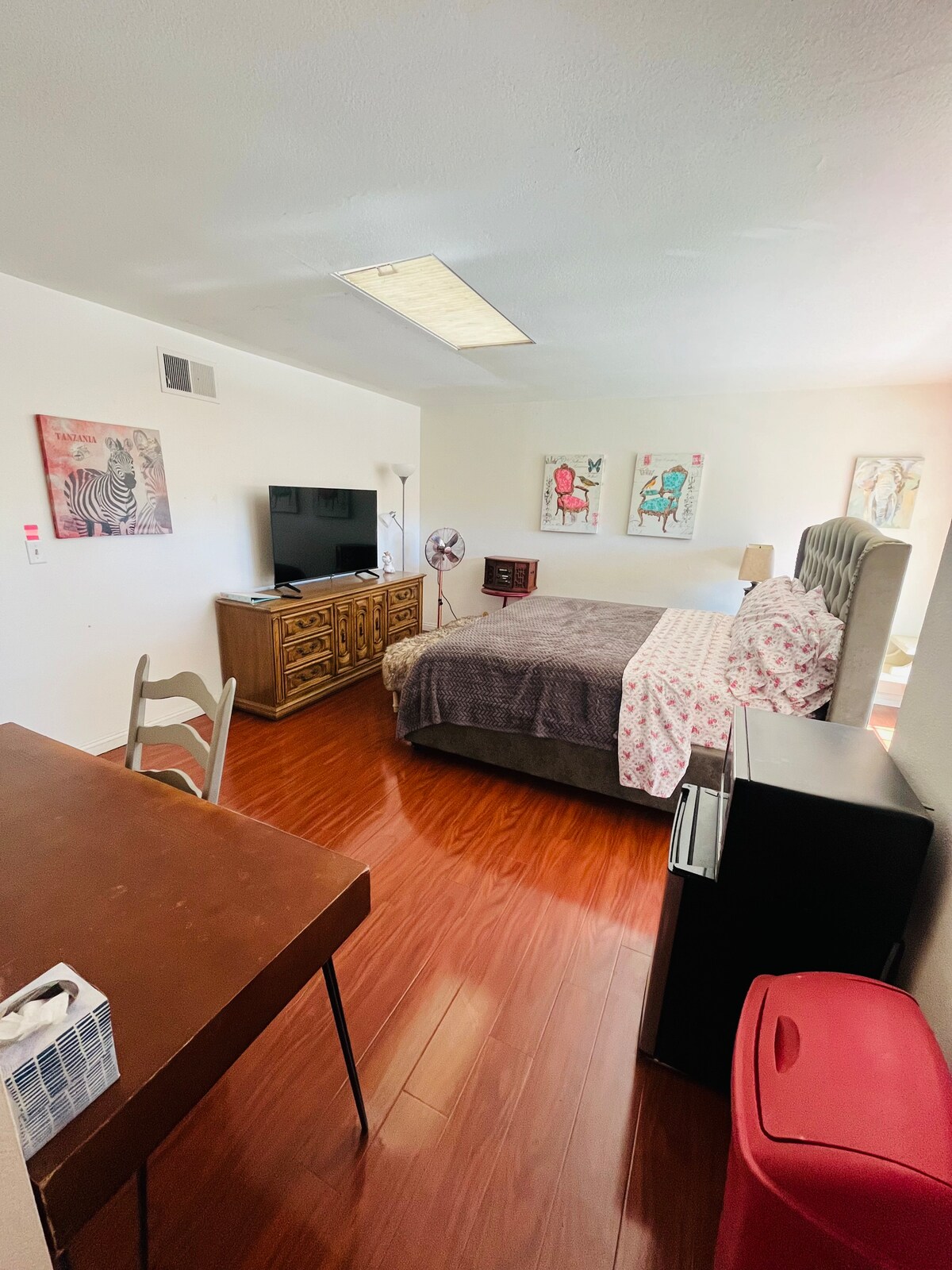 Welcome to your private oasis! This cozy studio guesthouse features a fully equipped kitchen, bathroom, and is fully furnished for a comfortable stay. Enjoy the convenience of a separate entrance, and relax in your own yard and patio space. Perfect for those seeking a peaceful, self-contained retreat!