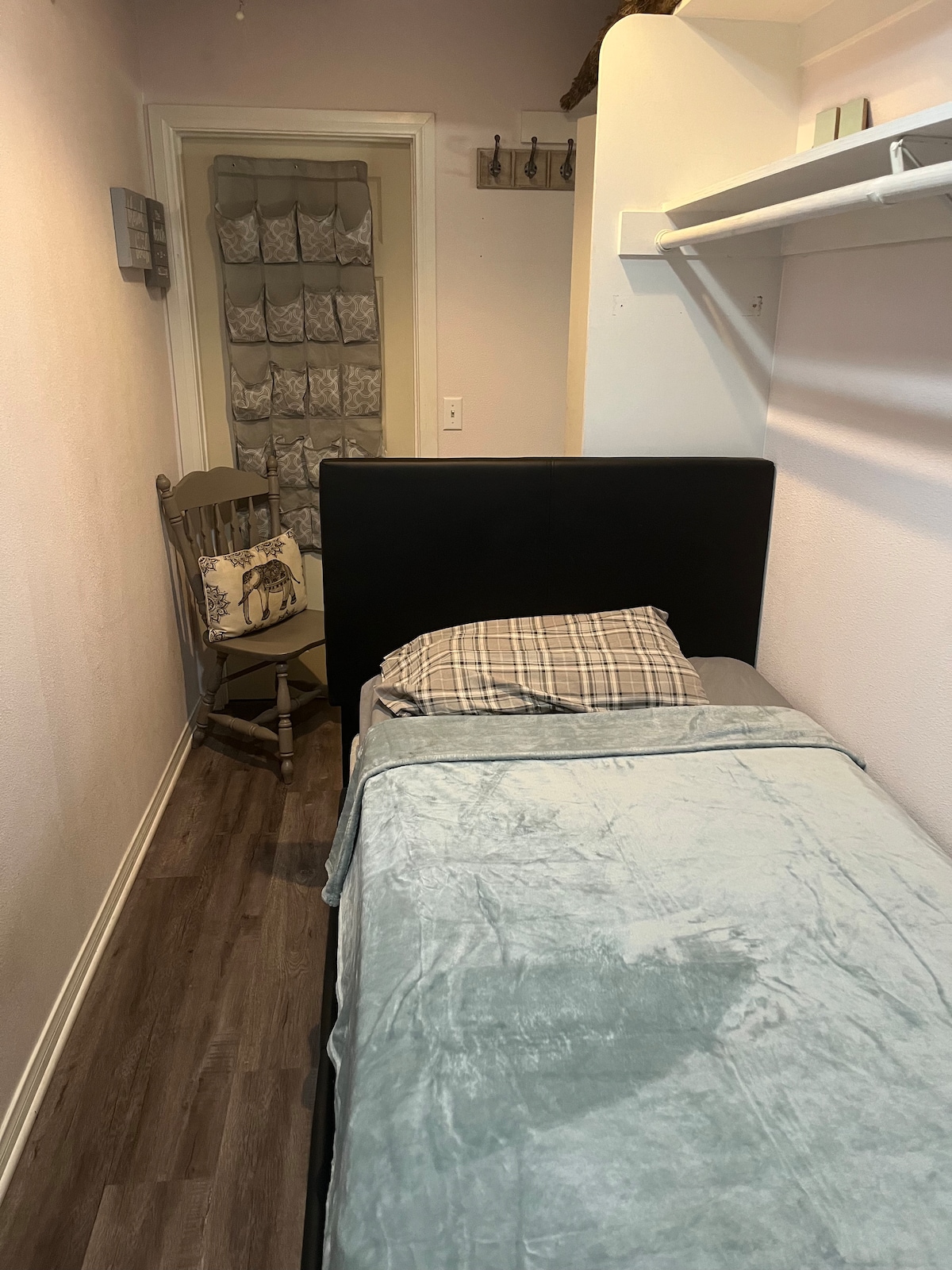 You will have access to the private bathroom, bedroom, the laundry room, patio furniture. Private entrance from garage.