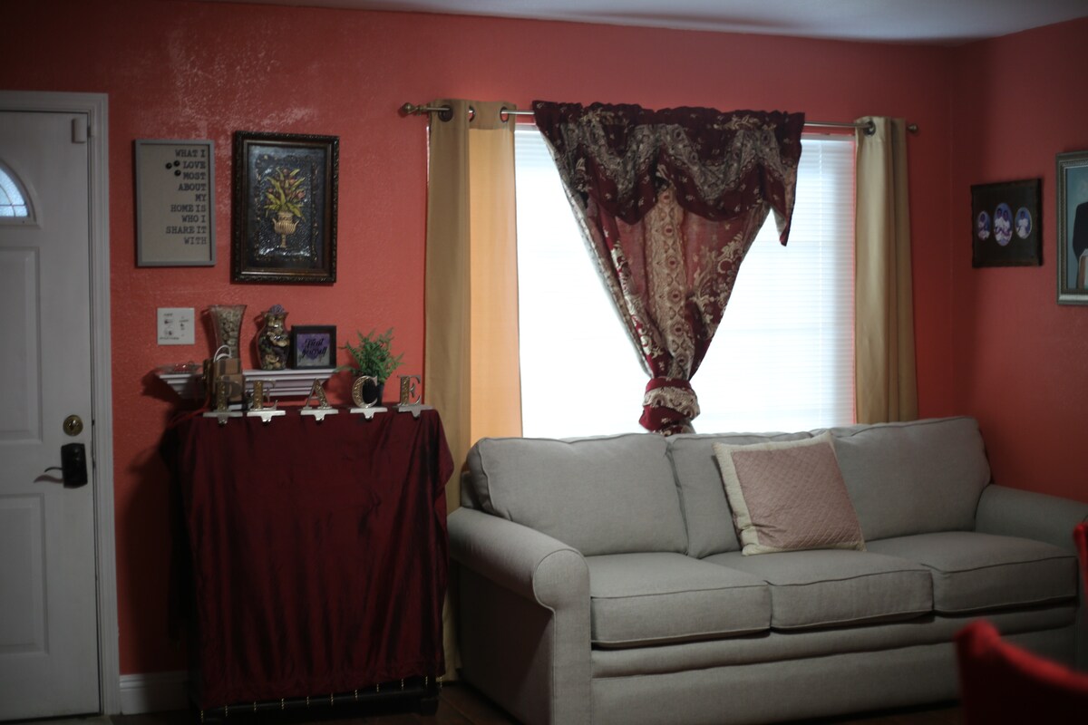 You’ll be staying in a private room totally furnished with a queen size bed, a dresser, closet, lamps, chair, a smart ROKU TV, fan, a monoxide alarm, iron, iron board, space heater and a window fan.