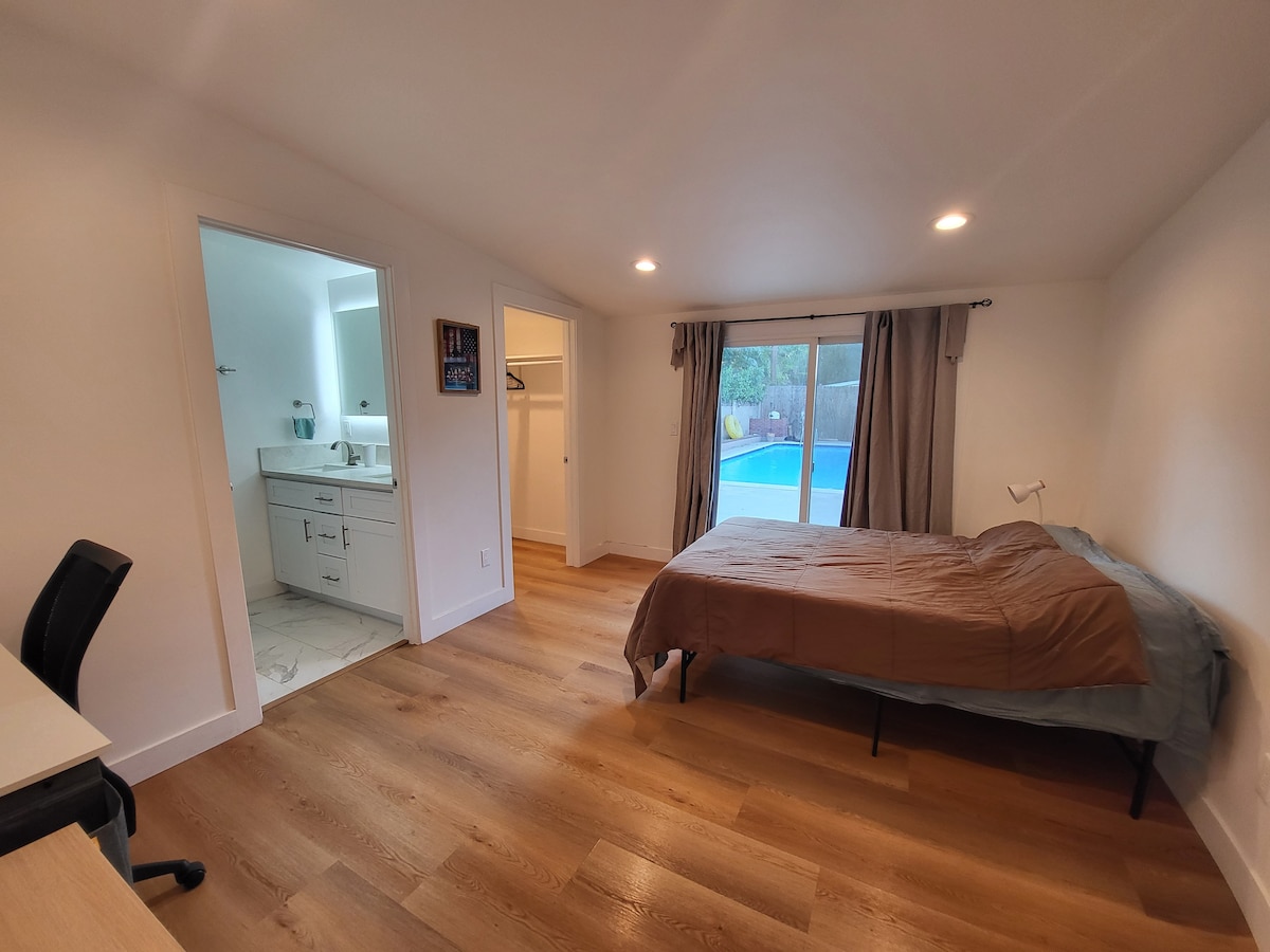 Master bedroom with private bath in a house with access to pool and backyard. Room size including bathroom/closet is 14 x 16 totaling 230 square feet of space. Centrally located by the 405 and 101(most traveled freeways in LA), as well as Ventura blvd. Easy access to bus, metro, and Uber/Lyft. 1 mile away from Cobra Kai Dojo.