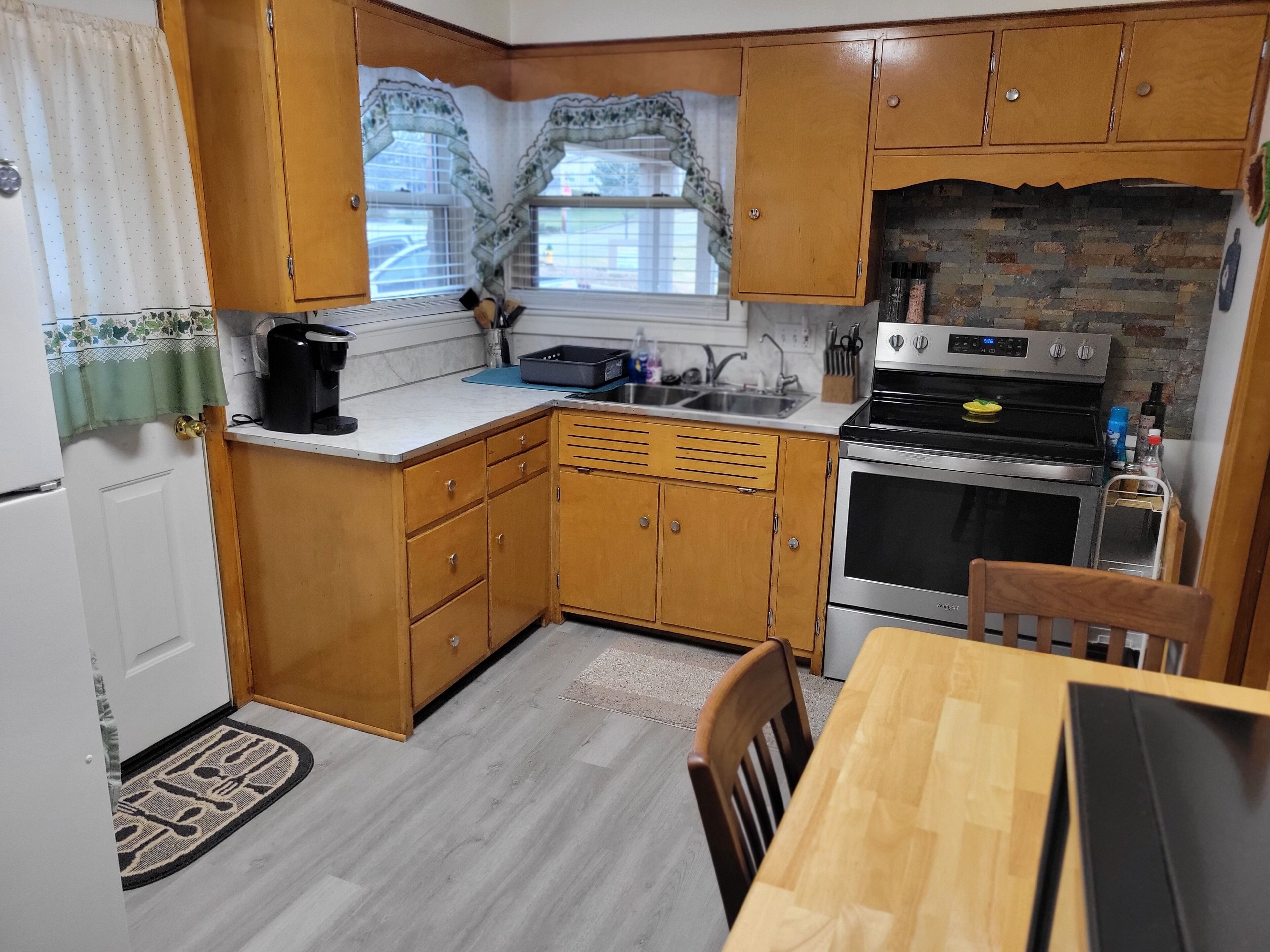 The kitchen has a gas stove and range, dishwasher, refrigerator, microwave and Keurig coffee maker. It is fully stocked with all of the essentials, i.e. dishes, silverware, pots, pans, baking sheets.