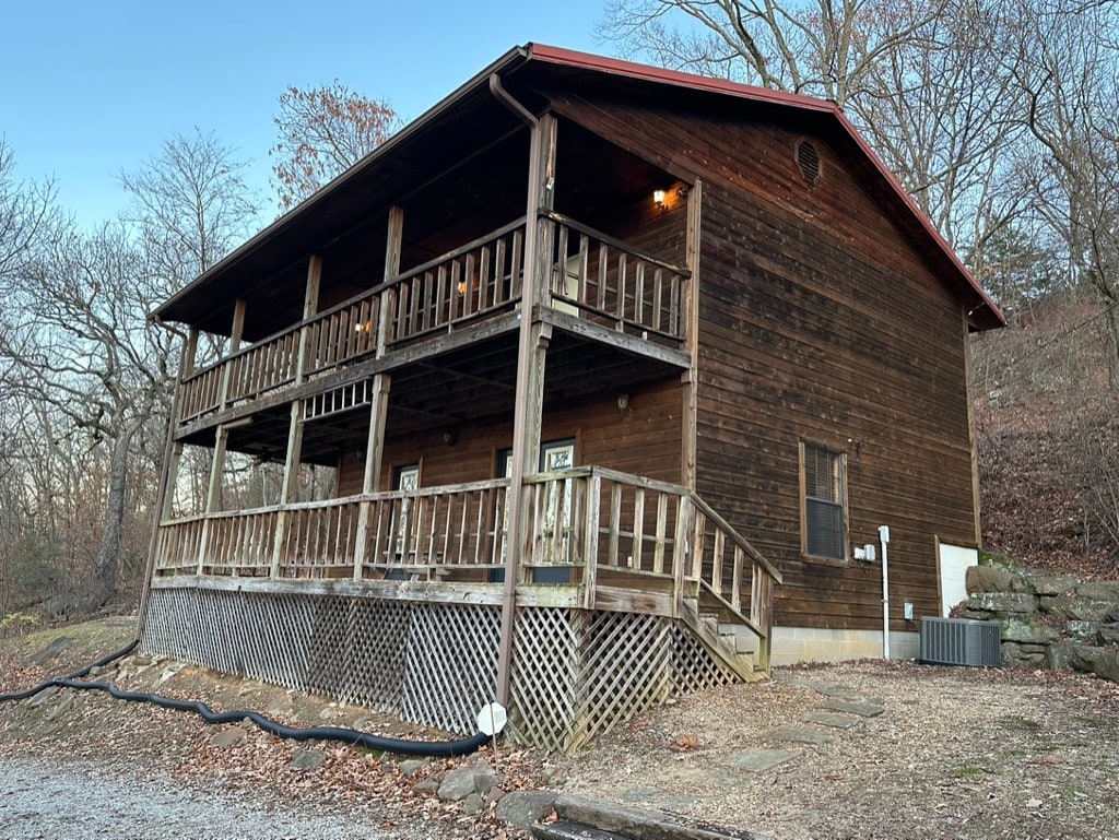2200 sq ft Log Home-Lodge centered on 11 wooded acres only 1.5 mi from Lake Tenkiller State Park. Come enjoy front porch rocking chairs & swing, hammocks, fire pit area, covered patio with outdoor seating and bbq grill, outdoor games.