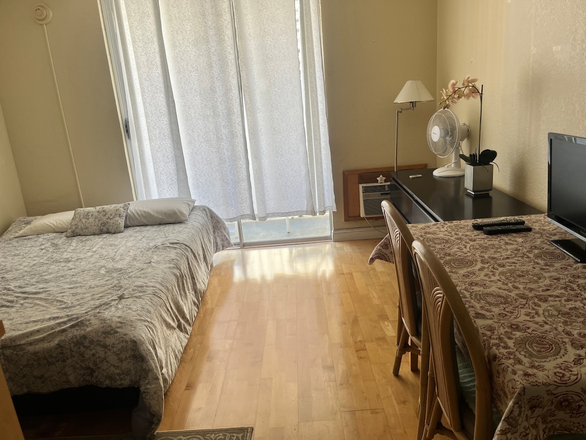 Clean simple studio Free Wi-Fi available. It has small kitchen not a standard kitchen.