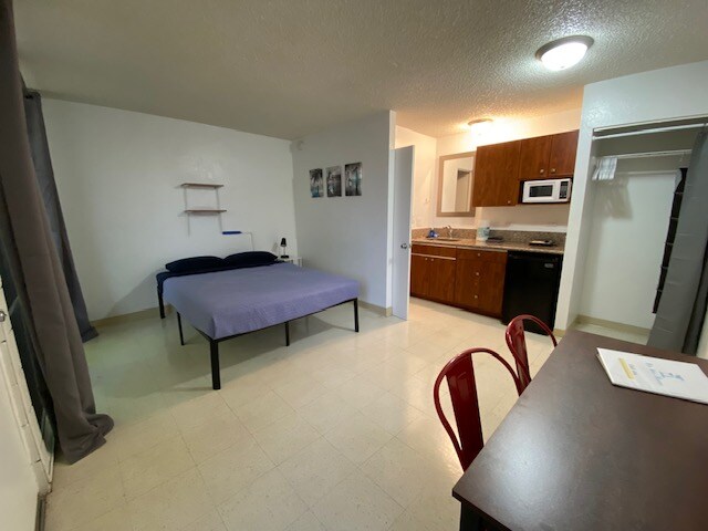 No Kitchen. No Cooking. Microwave use only.