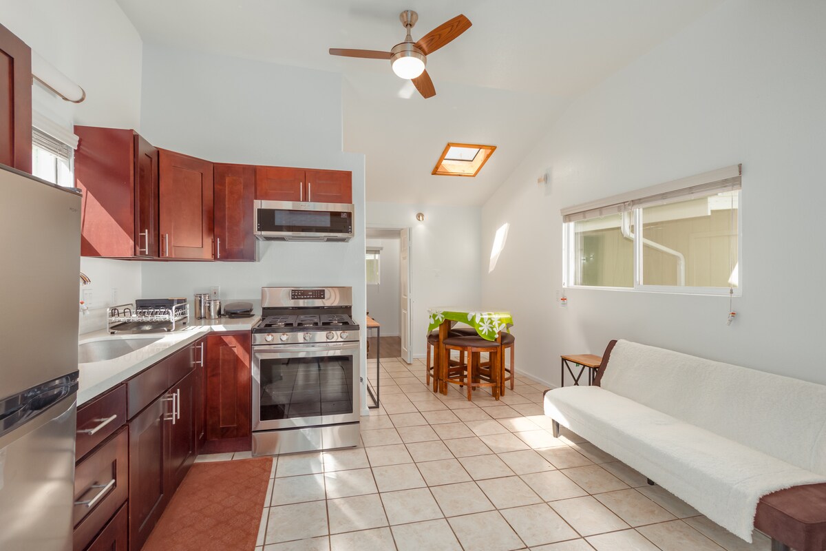 Our ohana is a 1000 sq. ft., private, stand alone, recently remodeled, 2 bedroom, 1 bath guest house. It is clean and beautifully furnished. The fully-equipped kitchen includes: