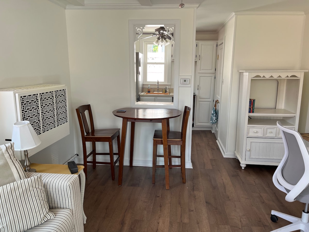 The carriage house features include counter top dining, updated kitchen and newly renovated bathroom. Spacious bedroom with walk-in closet, the couch is a queen pullout: the home comfortably sleeps 4.