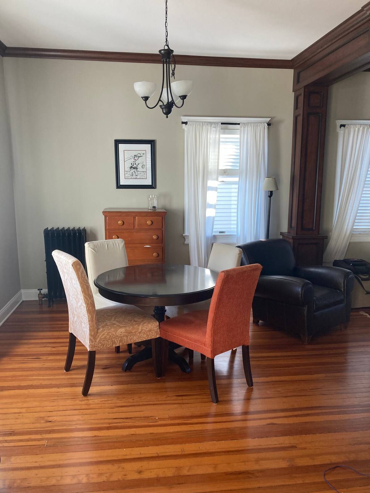 The shaded front porch has generous seating, and the spacious backyard includes a table, seating, and grill just for you. The living room has space to gather around the tv, or around the dining table for meals and games. There is also a laptop-friendly workspace.