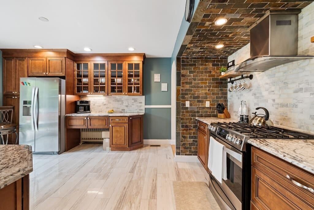 Directly across from the living room, the fully equipped kitchen is where the magic happens! Whether you're cooking up a family meal or preparing a snack, this space has everything you need to make your stay feel like home. Enjoy family-style dinners in the open dining area, or take the meal outside and dine al fresco on the patio.