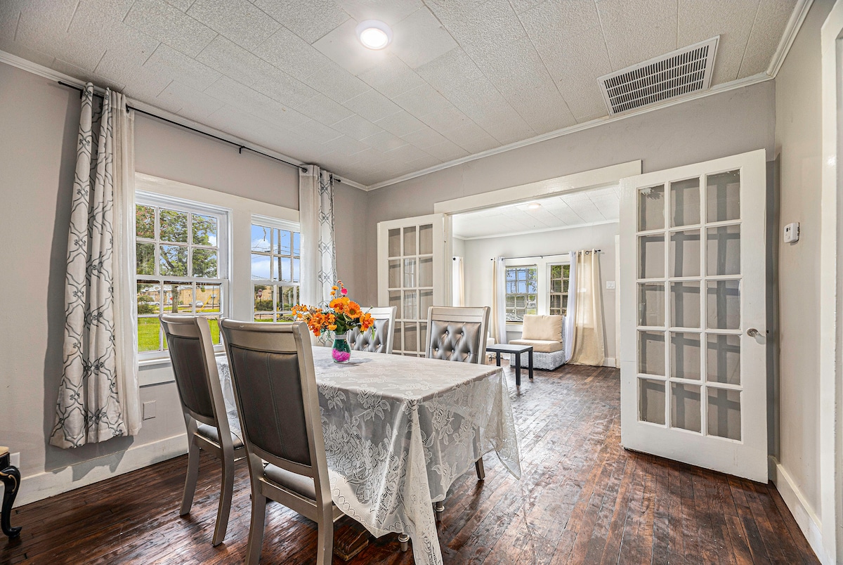 Welcome to our western old fashion luxury Villa Home! This house is renovated and designed by @GraceArtistry. This house is senior and handicap friendly with Walk-in luxury jacuzzi tub, covered patio, fenced backyard, all tile floors and fixed grab handles. There is City Park across street, easy access to HoustonDown, Galveston, Moody Garden, Schlitterbahn Waterpark, NRG, NASA, Kemah, Medical center, MD Anderson, Shopping Mall, Outlets, Museum, Restaurant, NBA Rockets, HEB, Kroger, Hospital.