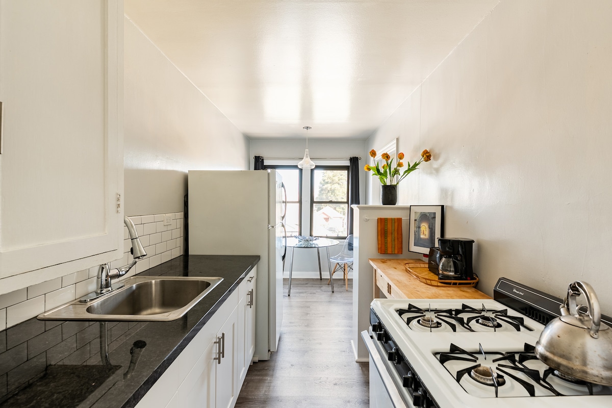 - "It was beautiful.. loved the backyard.. the owner Navin was very helpful and generous with the stay there . Hope I get to revisit one day." - "Perfect for 2 people! The bed was comfortable and the kitchen fine for a quick breakfast before a day's activity. Would definitely stay here again." - "Beautifully equipped 1-bedroom apartment. Clean, high-end fixtures in quiet neighborhood w/ample parking. Great water pressure in the shower, comfortable bed. Sleeper couch was adequate. Ground coffee was provided; very much appreciated. The garden is a special treat; mature fruit trees, hydrangea plants, trumpet vines, and honeysuckle…just lovely."