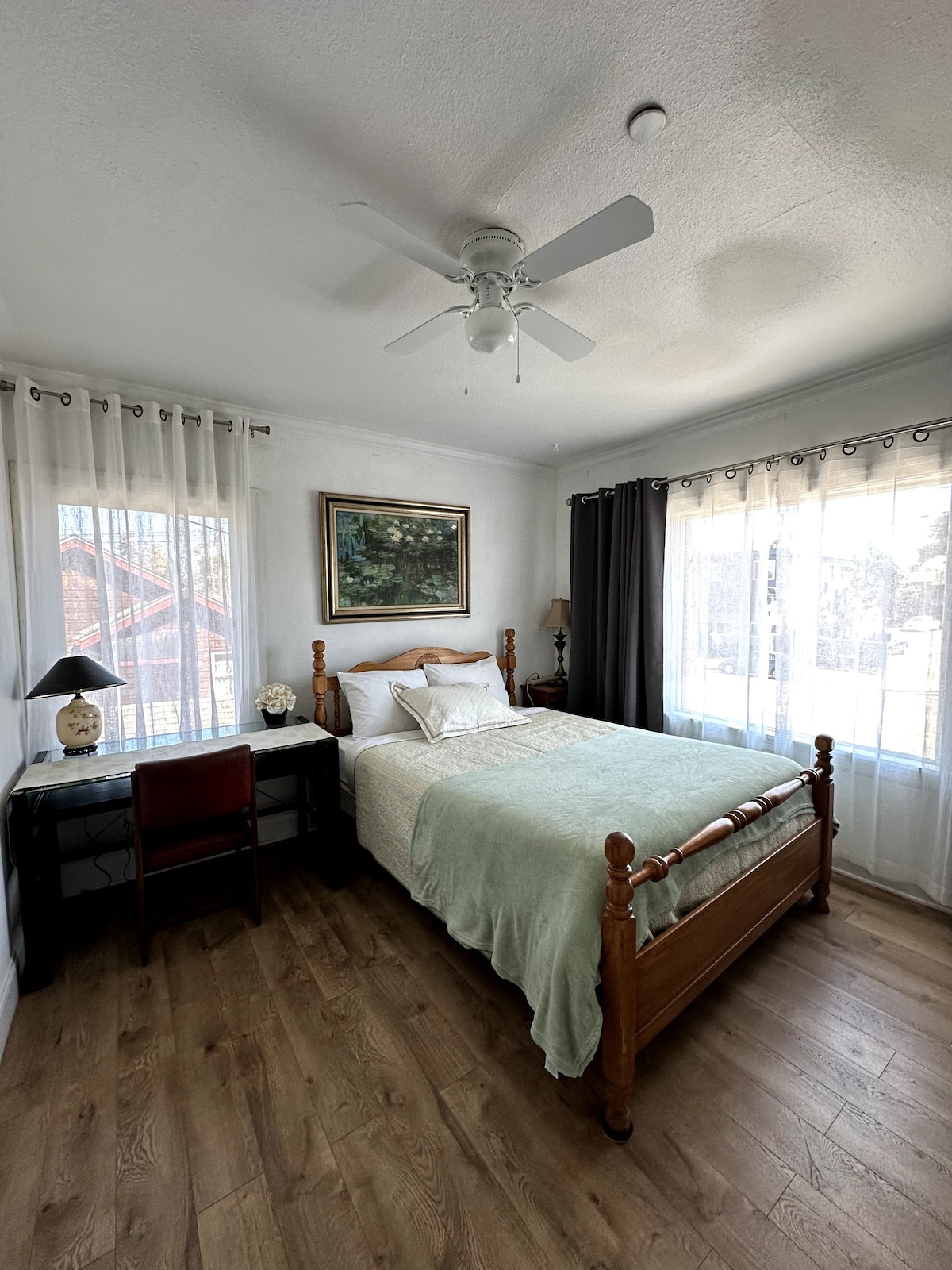 Our 700 sq ft. unit can comfortably accommodate a couple with a king size bed. Up to 2 additional guests can stay with an air mattress available. Heating and air conditioning throughout. Lots of windows that brings natural light, but yet very private. It overlooks into a garden. The open concept kitchen is fully furnished with all the essentials you will need to make a meal. All you need is to buy your food to cook.