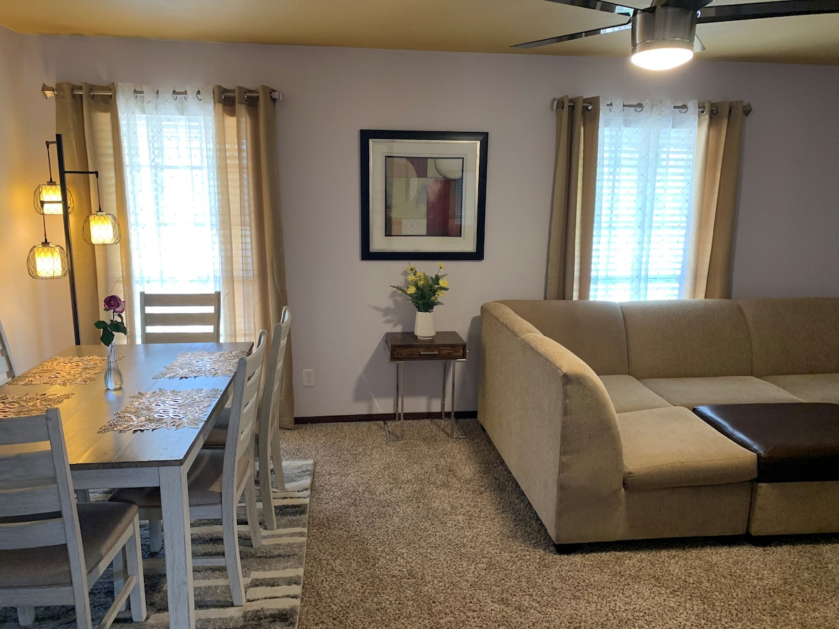 Welcome to our fun, easy accessible one-story apartment perfect for families, friends, workers, and groups of all kinds. With 2 bedrooms (1 California king, 2 queens, 1 queen sofa bed ,and 1 crib), 2 full bathrooms, Super Speed Wifi, and all Smart TVs (total 3), you’ll have all the space and comfort you need.