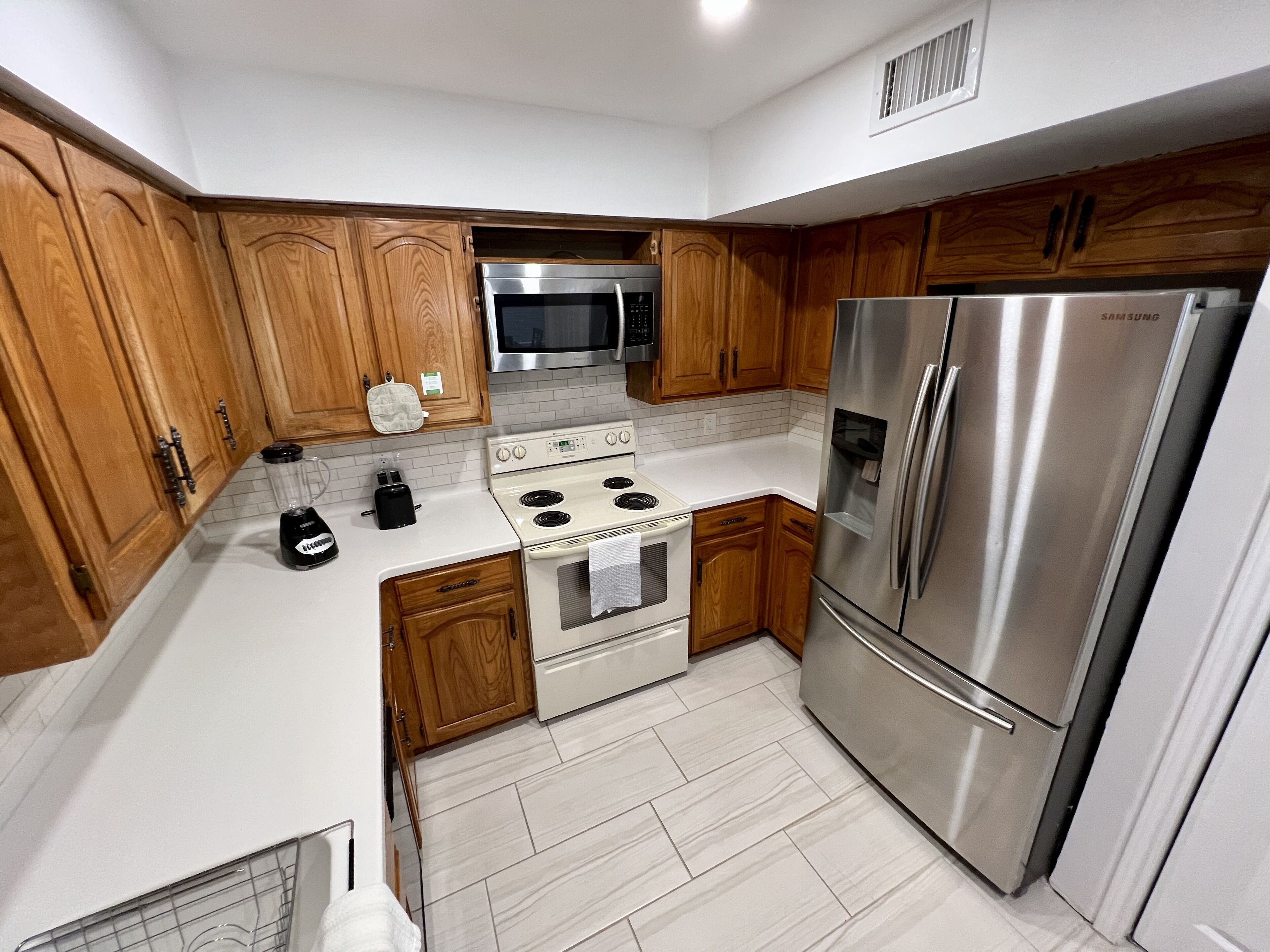 - Fully Equipped Kitchen: Coffee, tea, sugar, creamer, toaster, microwave, stovetop, bottled water, drinks, basic seasonings and (vinegar, soy sauce, cooking oil) breakfast oatmeal, grits, beans and all other cooking essentials and ingredients included for free.