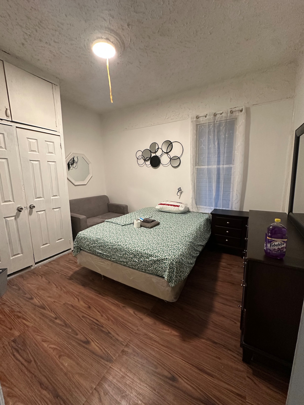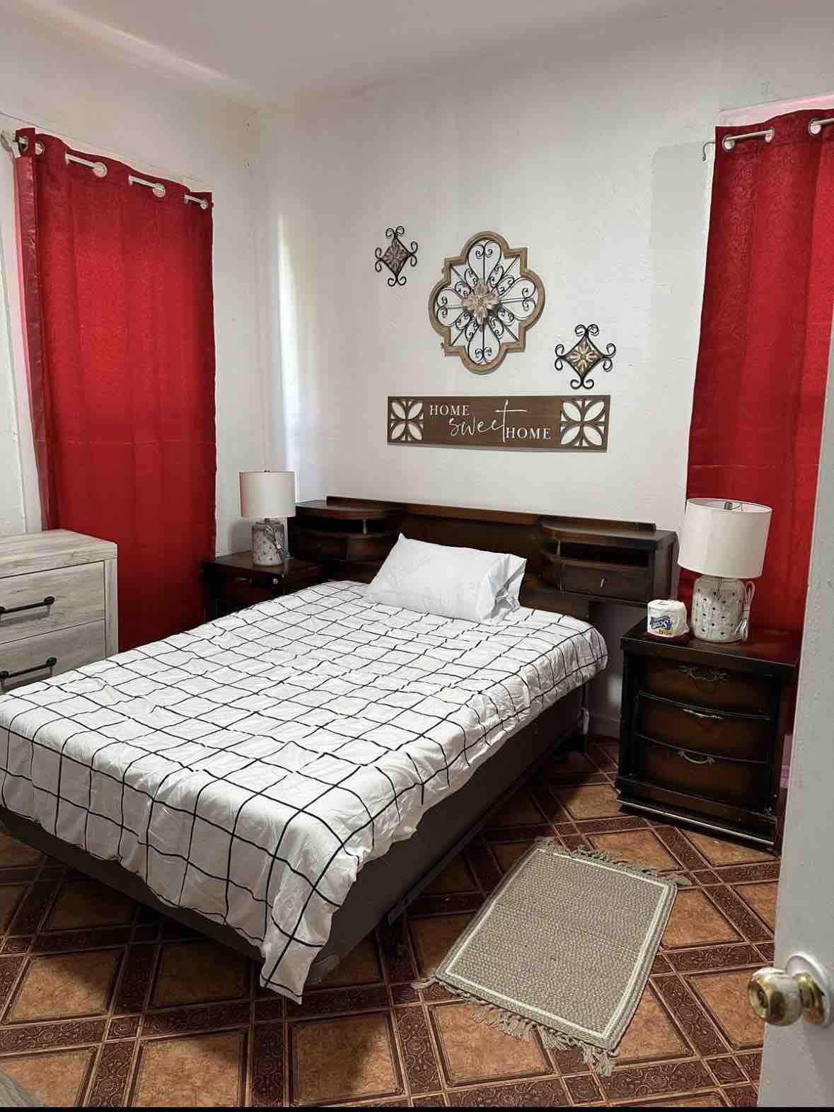 This large room has a queen sized mattress perfect for couple traveler or if more than one person stays an extra mattress available if needed. I provide clean sheets, pillow cases and towels upon arrival. Fully furnished, with kitchen & bath shared with other guests when you rent a room.
