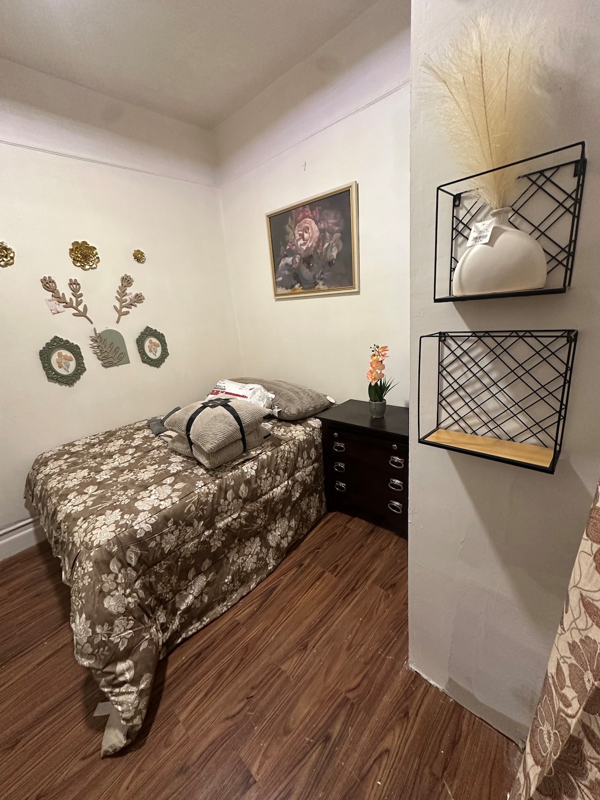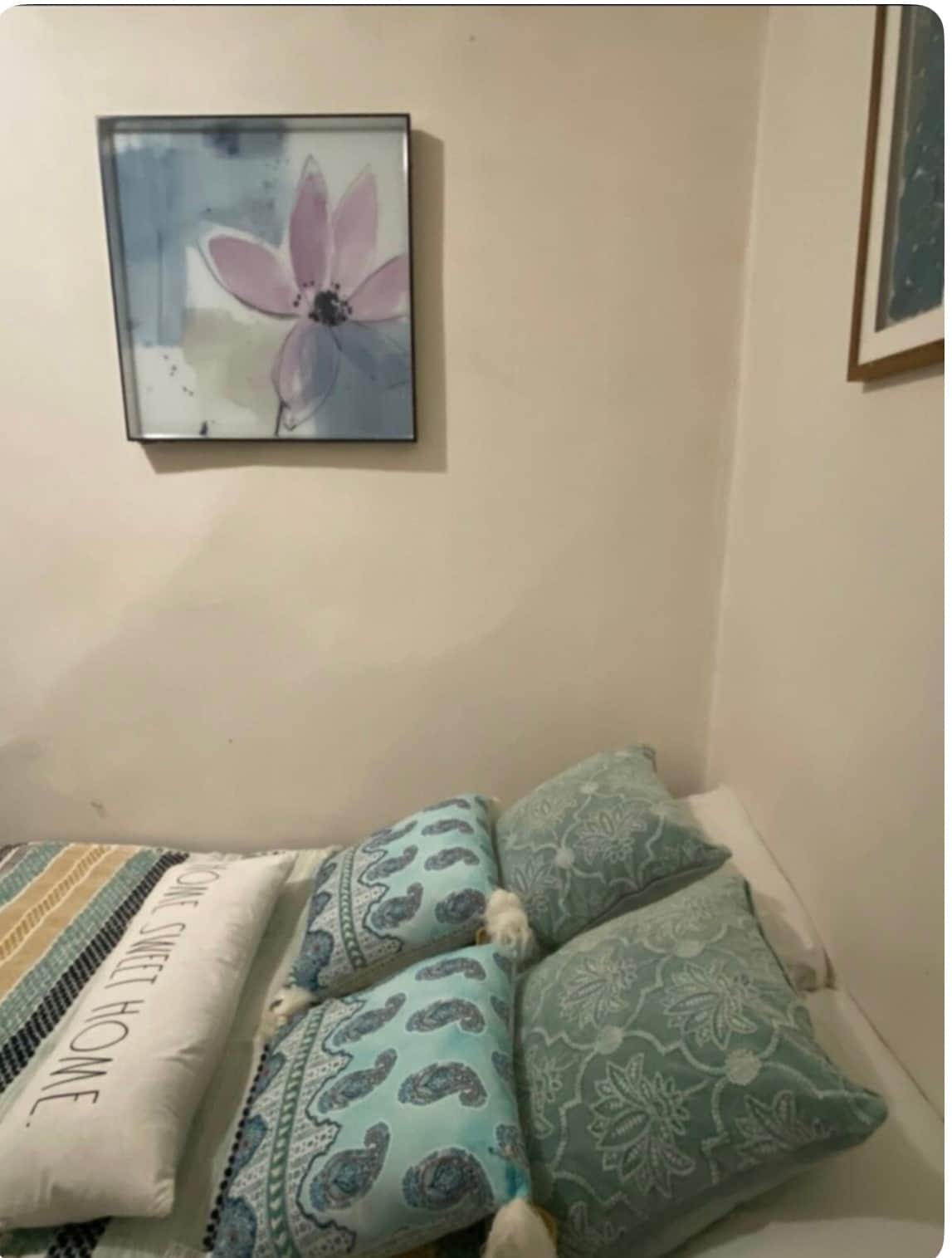 This room has a twin size mattress good for singer traveler or more than one person stays an extra mattress available if needed. I provide clean sheets, pillow cases and towels upon arrival.