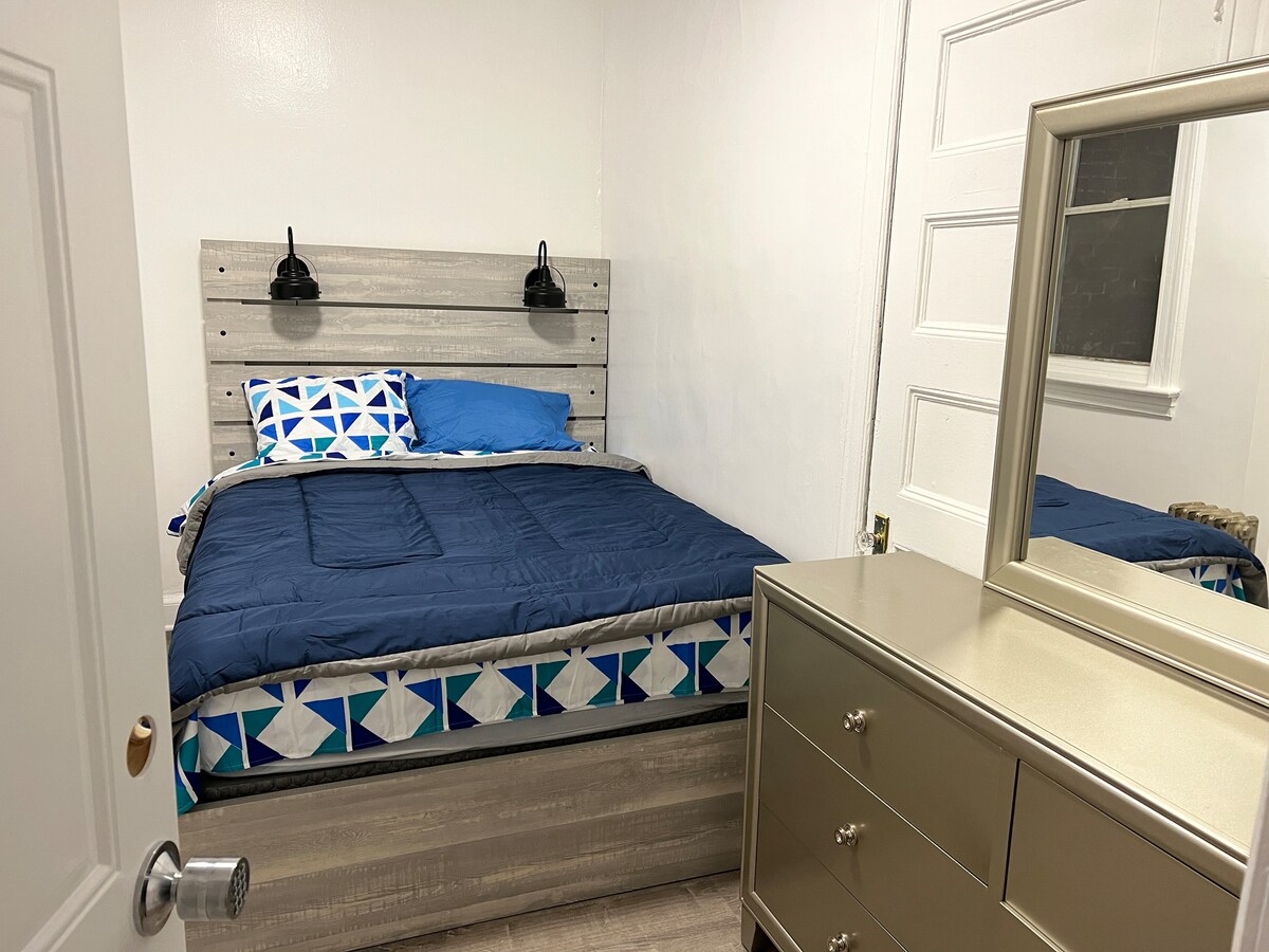 cozy room with style. full size bed. smart tv. microwave. a/c. designated study area. sheets, towels, and essentials included