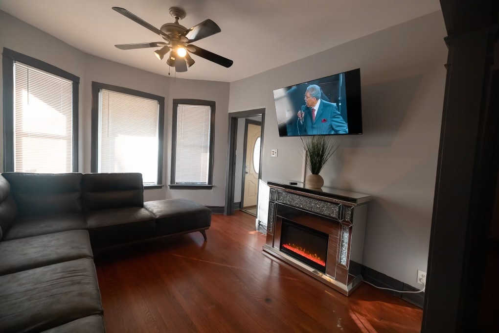 This garden unit is cozy, warm, and spacious. Found in a central location in Chicago, you have access to the entire city in a matter of minutes. Comes with all home essentials and utilities. Designed with style and comfort in mind. The indoor fireplace is the perfect place to sip a cup of coffee or hang out with your close ones.