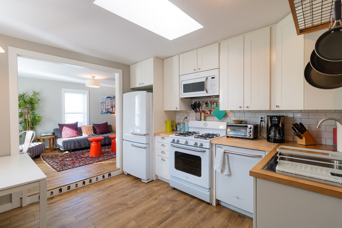 Guests should feel comfortable with a fully-equipped kitchen, two TVs, and fast wi-fi.