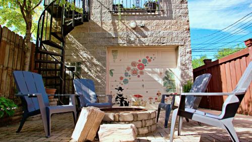 Featuring a garden, The Banksy-Free Parking -4 bedroom w King bed- Firepit Rooftop near United Center features accommodations in Chicago. This apartment provides air-conditioned accommodations with a balcony and free Wifi. On clear days, guests can head outside to enjoy the apartment's outdoor fireplace. Providing a terrace and garden views, the spacious apartment includes 4 bedrooms, 2 living rooms, flat-screen TV, an equipped kitchen, and 2 bathrooms with a walk-in shower and a bath. Guests can take in the ambience of the surroundings from an outdoor dining area or keep warm by the fireplace on colder days. The apartment offers bed linen, towels, and laundry service. During warmer months, you can make use of the barbecue facilities and eat on the private patio. United Center is a 13-minute walk from the apartment, while Union Station is 2.6 miles away. Midway International Airport is 8.1 miles from the property.