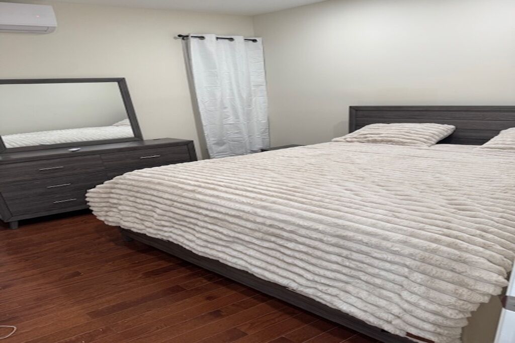 All new. This beautiful 2 bedroom, 2 bath apartment. With 1 Plush BeautyRest King size bed and 1 Plush BeautyRest Queen size bed. Full Size in unit washer and dryer. Full size Kitchen with full size appliances including Dishwasher and Garbage disposal. Beautiful Green Velvet couch and Easy Chair with foot rest. No Ikea furniture in this home. iSecurity cameras outside the unit monitors the entire 3 family home. Onsite Property Management.