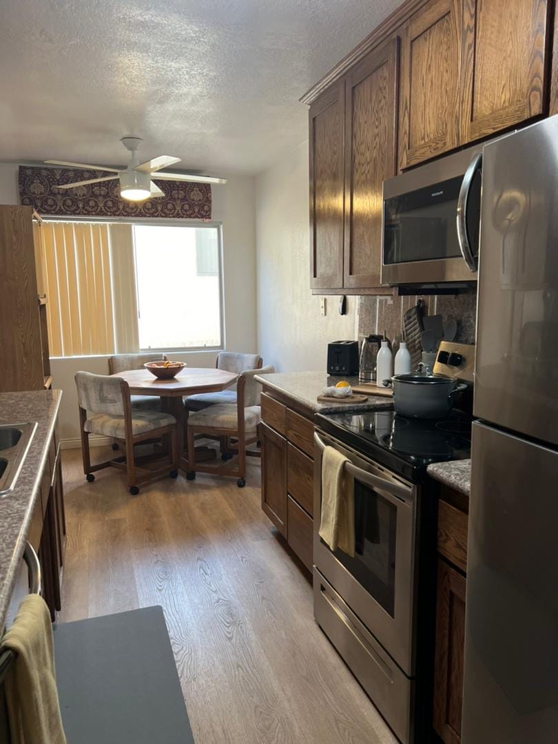 • Functional shared kitchen with refrigerator, stove top, and oven