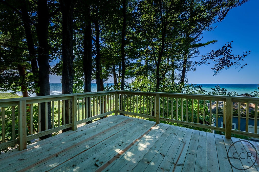The edge of the bluff is not even 100 feet away. Have a seat there, and survey this promontory where the water meets the land. The Lake has many moods, It can be calm and hypnotizing. It can be a baleful and frightening swirl of big waves and white water. Every day is different, and you learn to enjoy every kind of weather. Should you choose to get closer to (or in) the water, Duck Lake State Park is a half mile to the south on Scenic Dr (a right out of the driveway), and has an impressive expanse of sandy beach, along with miles of woodland trails, a beautiful inland waterway (Duck L) connected by a shallow, sandy channel to the big water, and some great sand dunes to stomp around on.