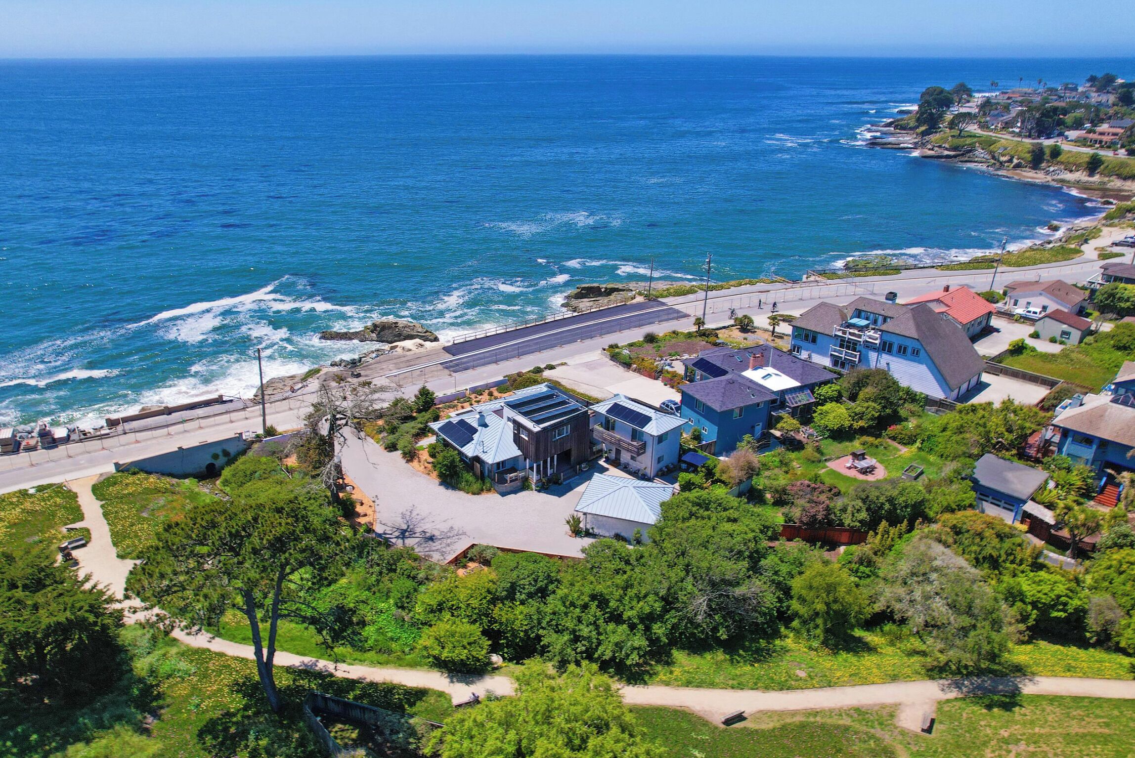 Enjoy the Santa Cruz lifestyle in this bright, light-filled beach house just a stones throw to the ocean. Ocean views of Monterey Bay right off of West Cliff & the walking path.
