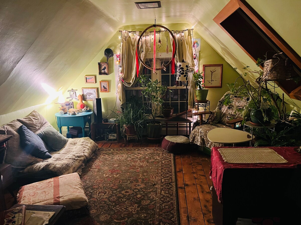 Two rooms totally yours/private. One cozy space w/ kettle, toaster oven, mini fridge, yoga accessories, record player with an eclectic collection of albums and sky lights. Bedroom with full size bed, dresser and closet space. Two shared bathrooms-one with soaking tub, one with shower, heated towel racks in both. Ceiling fan/attic fan - no A/C. Back garden space available in warmer weather. Kitchen, dinning room, living room are not shared space. Parking for one car in driveway and street parking is available.