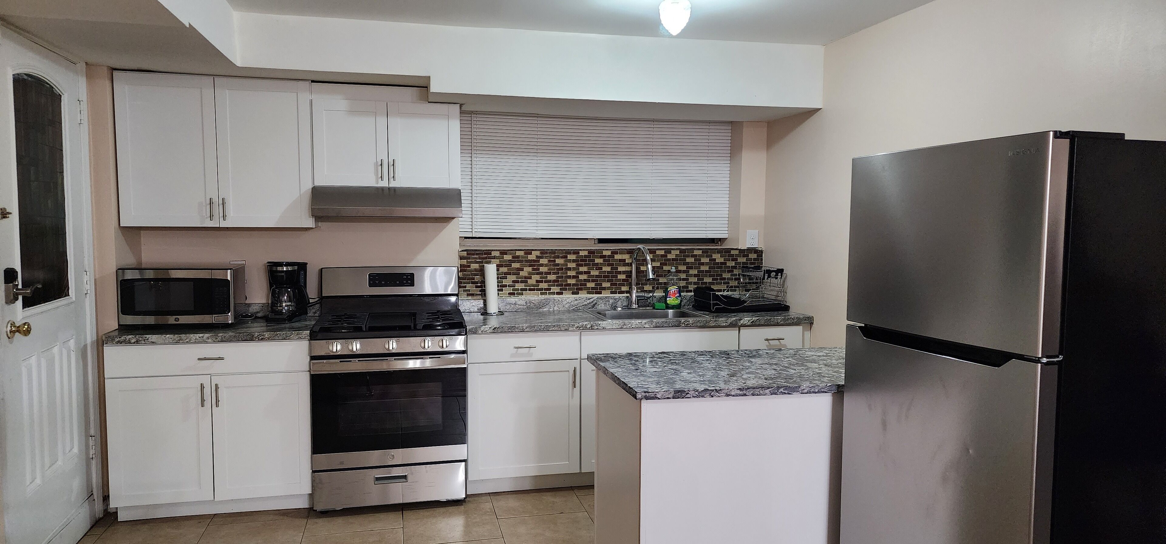 The property is brand new and close to all. It is ground level with your own private entrance using the side well entrance. It's a perfect space for a couples get away, working remotely or a long term stay. .All amenities are provided. There is plenty of street parking at all times. In the closet you will find extra blankets, towels, iron, ironing board and an air mattress for additional guest or children. The kitchen is fully equipped with all kitchen essentials like plates, utensils, stove, full size refrigerator, microwave and coffee maker.