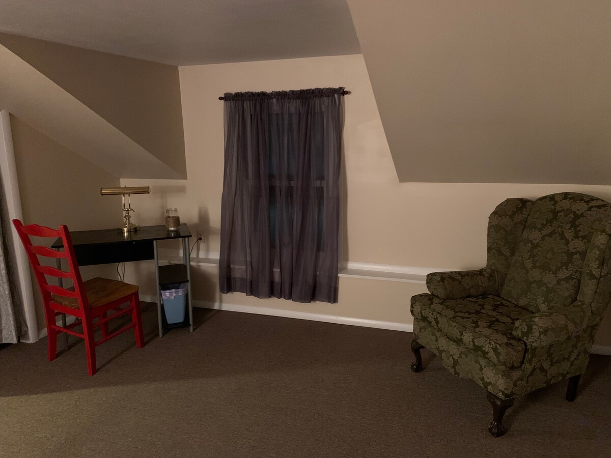 2nd Floor Private Room with Queen Bed, Sitting Chair, Desk with Chair, Internet Access, Shared Full Bath, Kitchen & Laundry