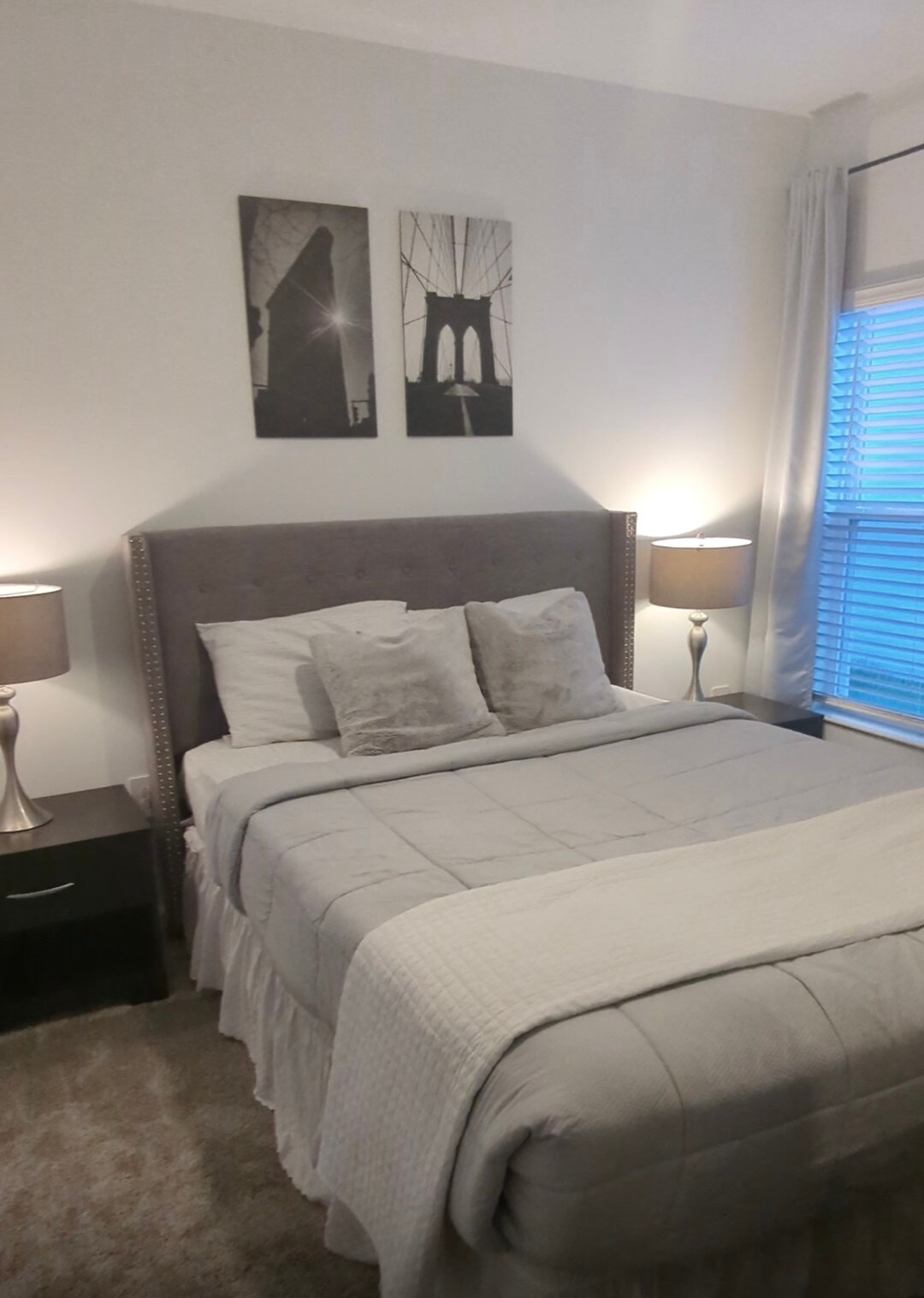 Cozy Cute small space. Your space features a brand NEW fridge, flooring, bathroom, kitchen. Queen sized mattress, streaming device, and pillows! You have a full closet just for you.