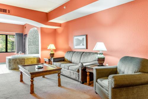 Overlooking Lake Delton and offering a private beach, this Wisconsin Dells resort and spa features spacious apartments with full kitchens and free wired internet access. An indoor pool and seasonal outdoor pool are located on the property. Each warmly colored apartment at Delton Grand Resort comes equipped with designer furnishings and a fireplace. A private balcony or patio is offered in every accommodations. Separate living areas, working desks, and televisions with satellite channels are included. Guests can relax in the lake-front spa located on-site. A sauna and wellness center are also featured at the resort. A private BBQ area and fire pit are provided to all guests at Delton Grand Resort. Noah’s Ark Water Park is less than 1 mile away from this resort. Timbavati Wildlife Park is 2.5 mi from away.