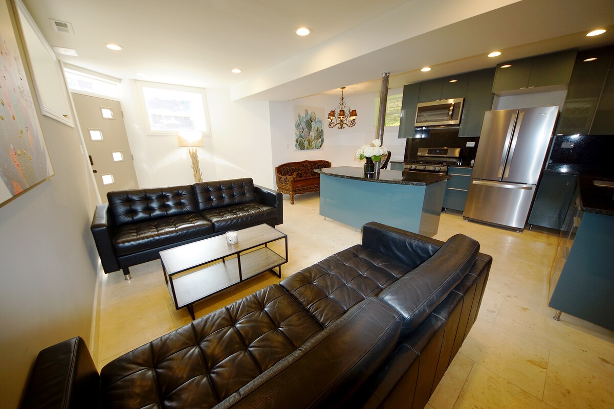 Sleek, secure, and sun-drenched! This brand-new 2-bedroom, 1-bath garden unit is your tech-savvy urban oasis with a private security system and personalized entry codes. Enjoy modern, stylish decor (and a cozy fireplace!) Unwind in a spa-like bathroom and enjoy morning coffee while watching the sunrise or an evening glass of wine in your outdoor space for 2. Work from home in style with a dedicated workspace and a convertible bonus area.