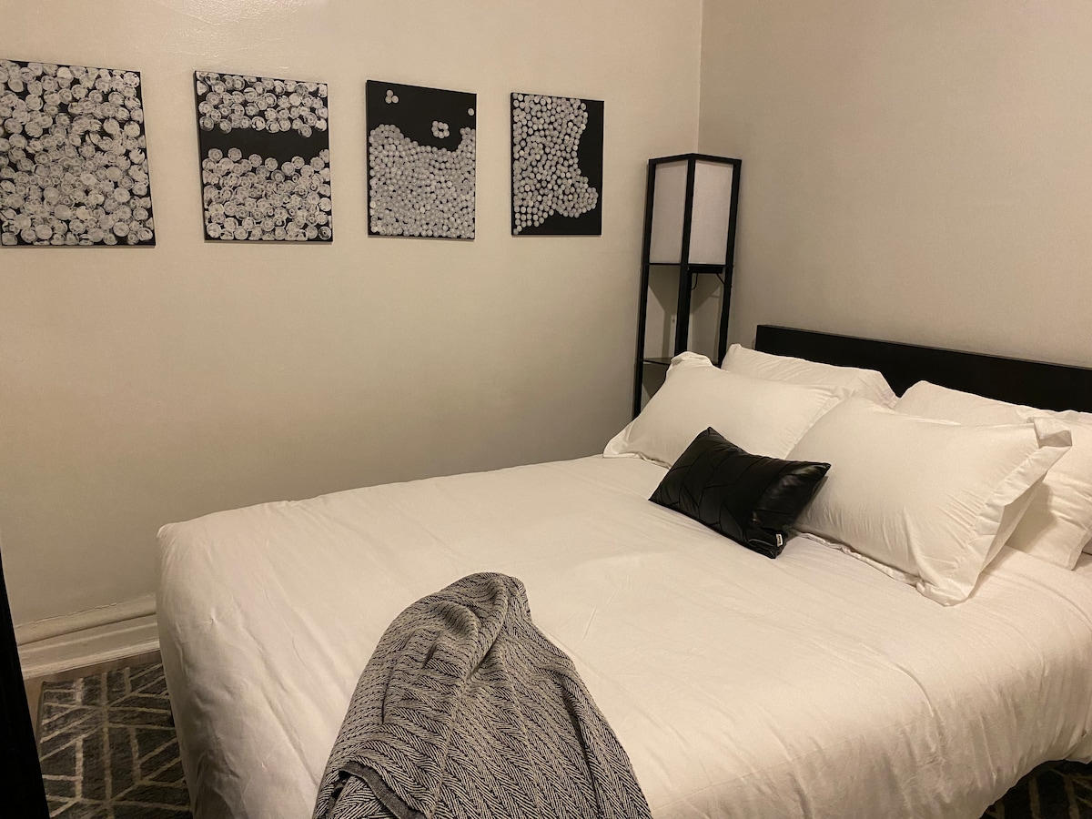 Enjoy a peaceful temporary non-smoking living space in the heart of the city. Located just 6 minutes from the University of Chicago, this black and white themed building will delight those looking for a stylish place. Our vintage building has three 3 bedroom apartments with private bedrooms with either a twin, queen or king bed. Room 3 has a queen bed. Guests receive laundry service, 24 hour concierge and weekly cleaning. Just arrive with your suitcase and you will be set.