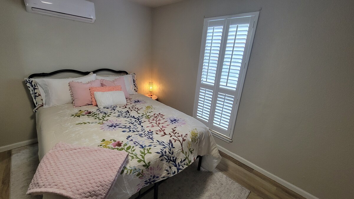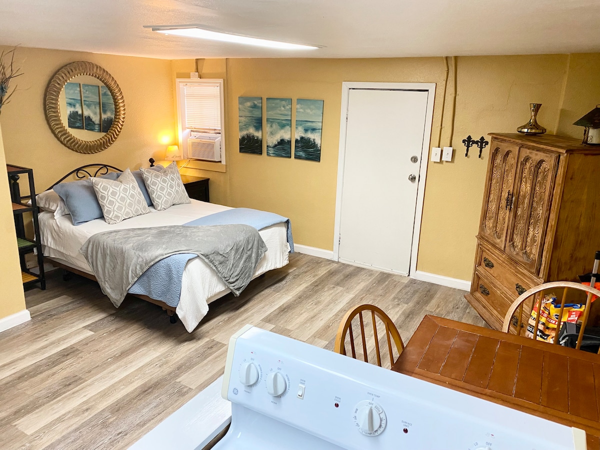 This room is my most popular room so if you’re coming across it now and it’s open for the dates you want, do not wait to book. I’ve decorated it with beach-y blue hues for a calming and peaceful effect. It’s cozy but roomy and clutter-free. Enjoy the king bed w/ plush comforter & soft sheets, 55-inch wall-mounted Smart TV w/ plenty of apps, and a shared closet for ample storage space. Press BOOK now:)