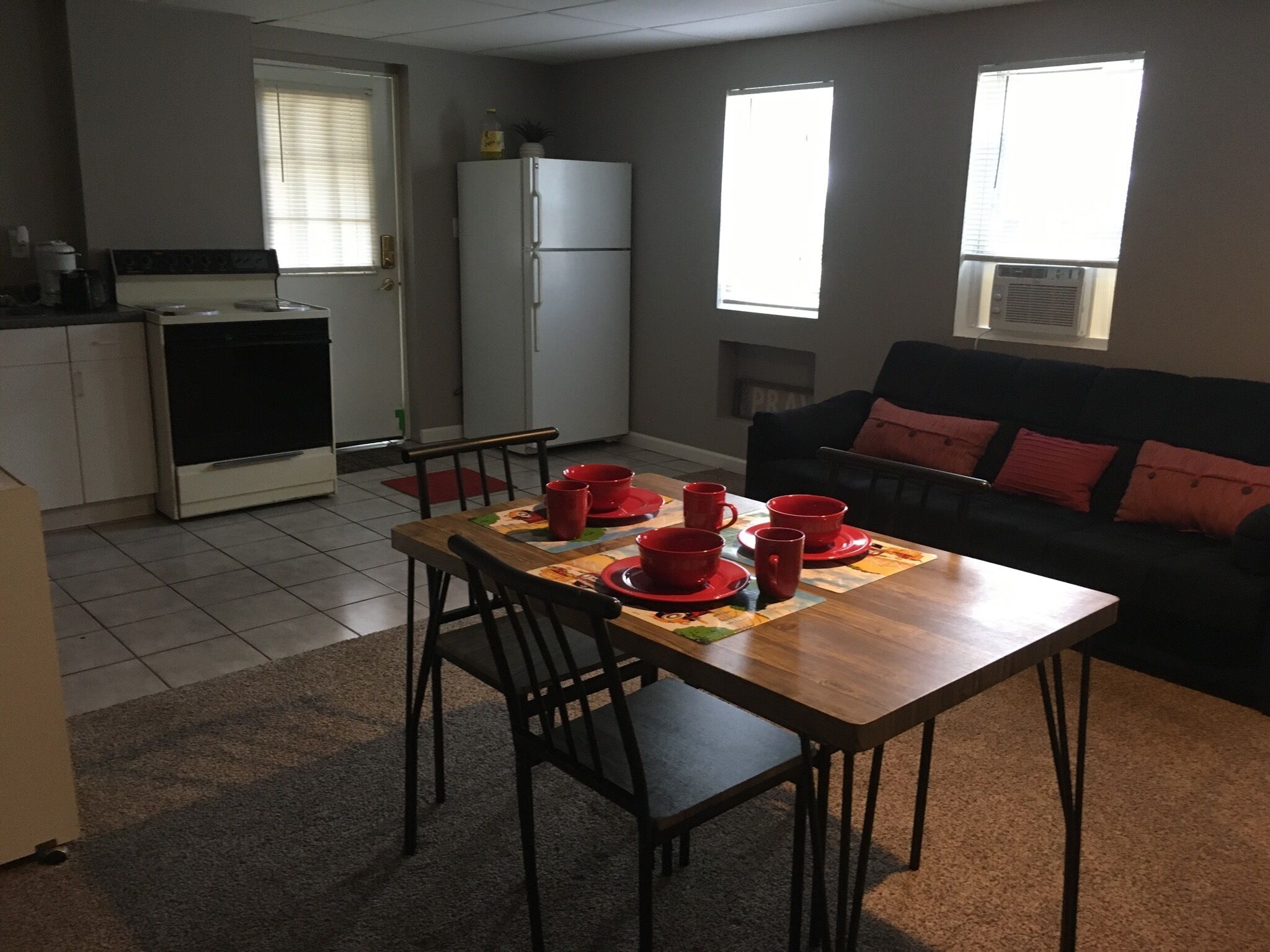 - "We were looking for a gathering place for 4 college women to get together to relax and unwind as well as catch up on each other's lives without spending a fortune. This 2 bed room converted school house has good character. It is still in the process of being remodeled, but fully functional. We spent most of our time sitting around the kitchen table sharing meals and having wine or in the back yard table having coffee and the enjoying the sunshine. To our surprise, Chet convinced us to try Karaoke Friday night and we all started singing and dancing in his pub area. Good times for sure. We visited a local winery, 2 parks for hiking and went out to a local church. This was a nice, quiet place to gather. Chet went above and beyond to bring an extra twin bed into one of the bedrooms so we each had our own sleeping space. This was very much appreciated. I am not sure if we would be back in the New Stanton area, but if we did, we would visit again."