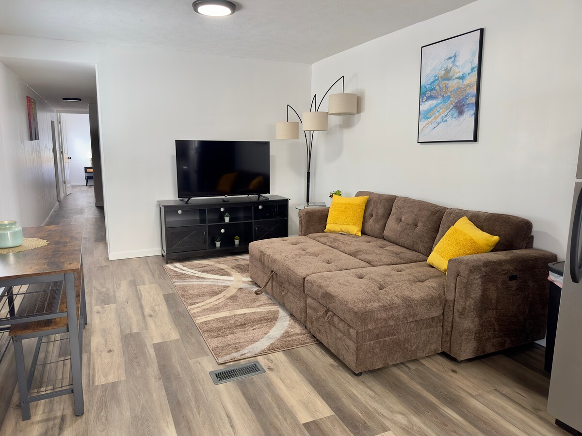 Each apartment features a fully-equipped kitchen, in-unit laundry, lightning-fast WiFi, smart TVs in the living room, and complete privacy throughout your stay. Additionally, there is no need to worry about expensive parking fees - This location offers free parking for two cars in the attached garage and additional free parking in the parking lot.