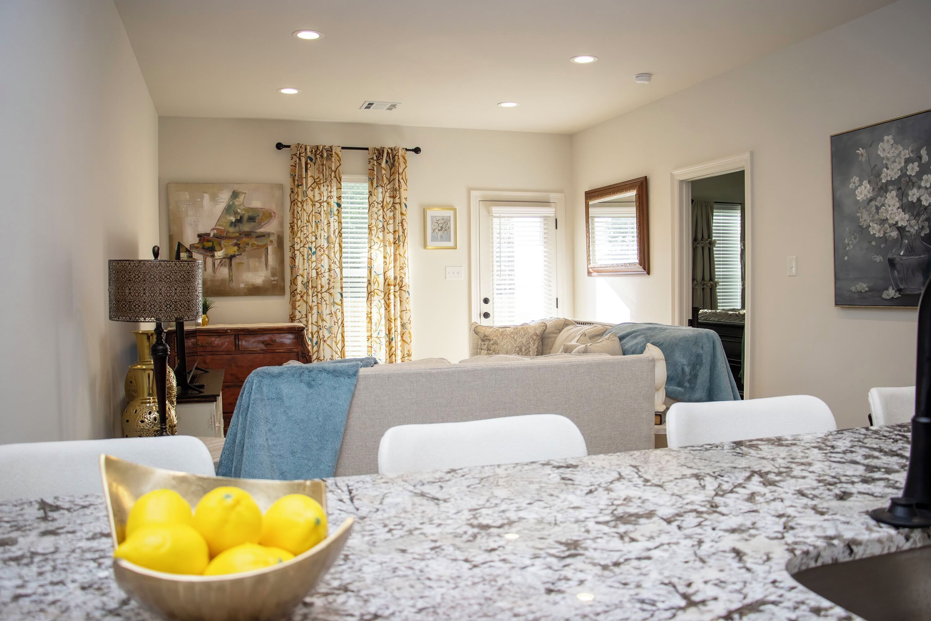 ✓ Open-concept living area offers comfy nooks for work-from-home days
