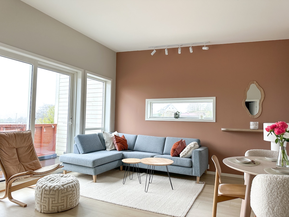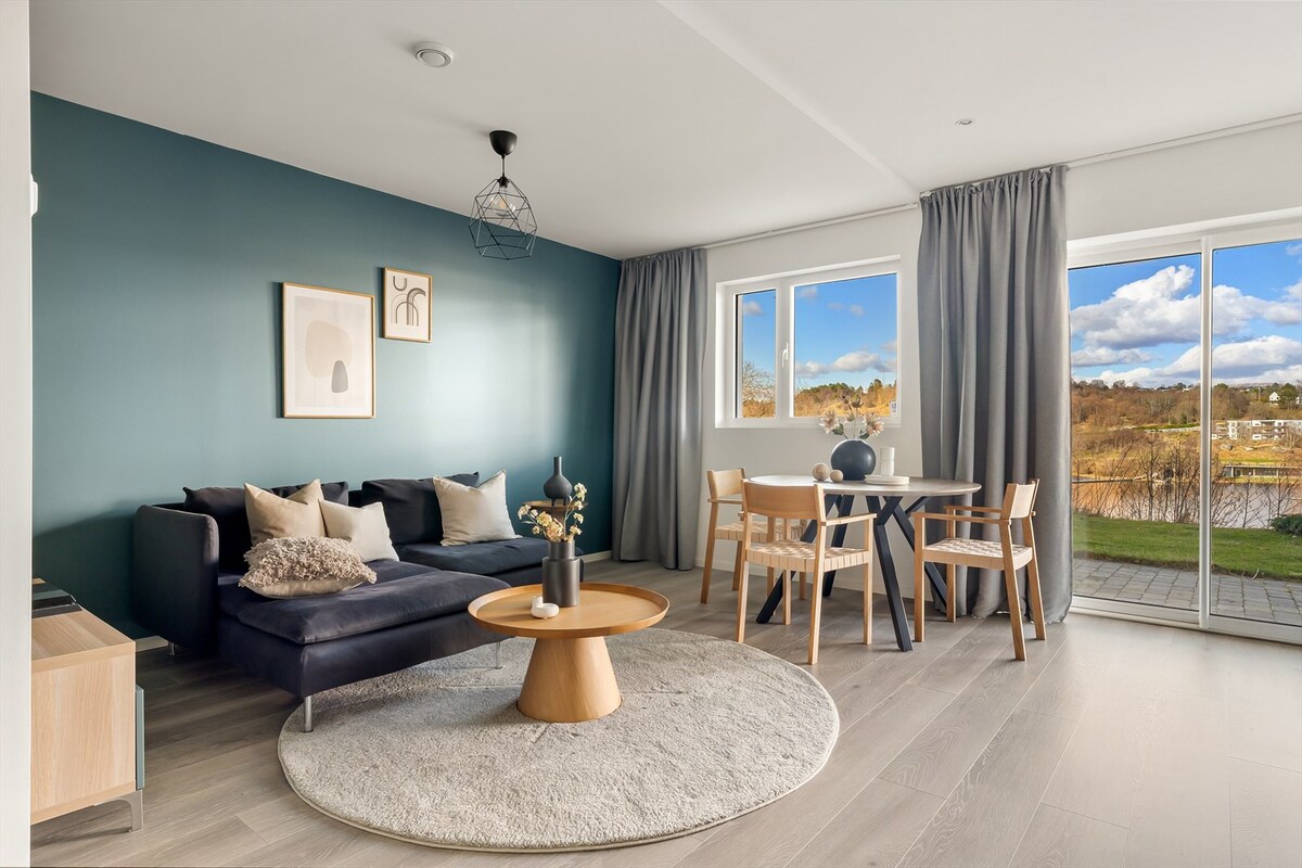 Cozy downstairs condo in unique location right on the golf course! Enjoy the view of the green countryside and hit the golf course right outside the door. The apartment is also just a few minutes away from Lagunen Storsenter, which offers a wide selection of shops, restaurants and public transport. Perfect for golf enthusiasts and those who value a quiet, but central, existence