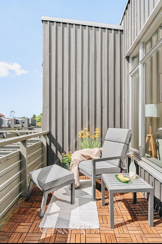 The balcony is furnished with comfortable outdoor furniture, and here you will find a small green oasis with plants and views of the surrounding area. An ideal place to retreat after a day of experiences.