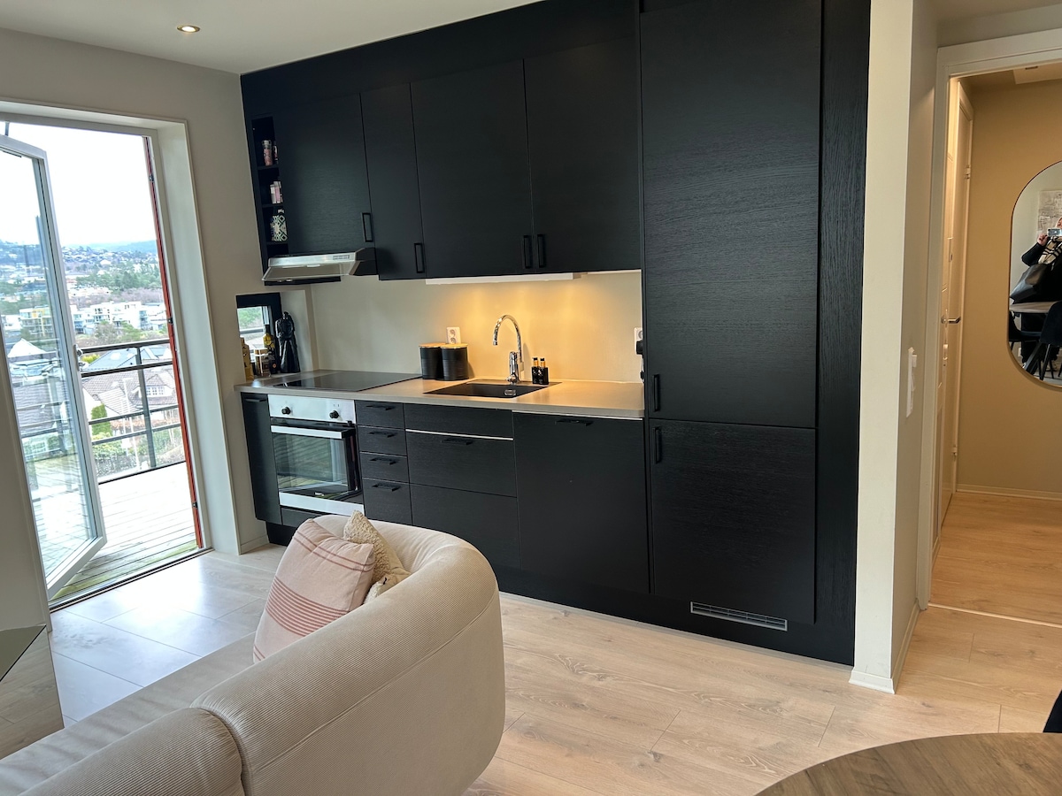Welcome to our bright and modern apartment, perfect for both short and longer stays in Bergen! Here you live in an end apartment on the top floor (2nd floor) from 2015, with a large balcony that gives you a real VIP feeling - from here you have panoramic views of the Fana Stadium.