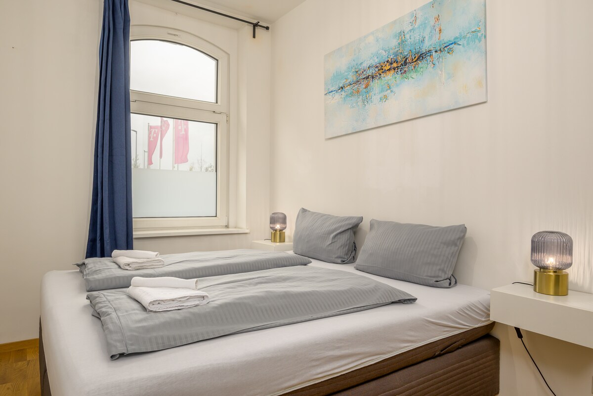 Citycenter Apartment is 85 m2 and has 2 large bedrooms and a living room. It is centrally located, only 450 meters from the main railway station and has modern rooms in different categories. It is about 1.4 km from the old town. The location is optimal by car, bus and train to reach and is an excellent starting point for excursions in the city. There are numerous cafes and restaurants in the promenades of Leipzig Central Station.