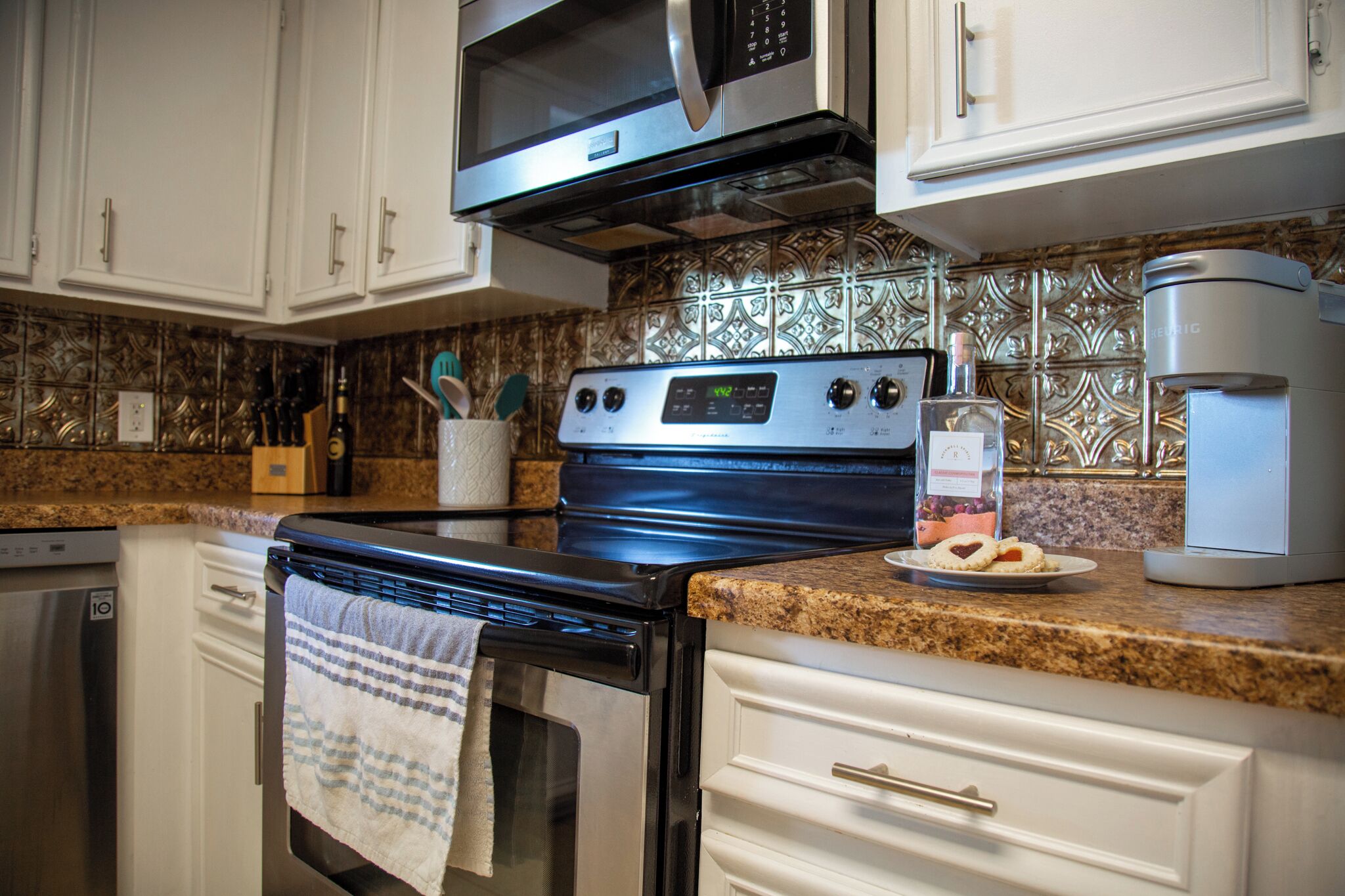 The kitchen is ready and equipped with the basic cooking utensils you may need: cookware, dinnerware, eating utensils, wine glasses and bottle openers. The Pearl also offers a Keurig coffee maker and plenty of K-Cups, as well as creamer and sugar.
