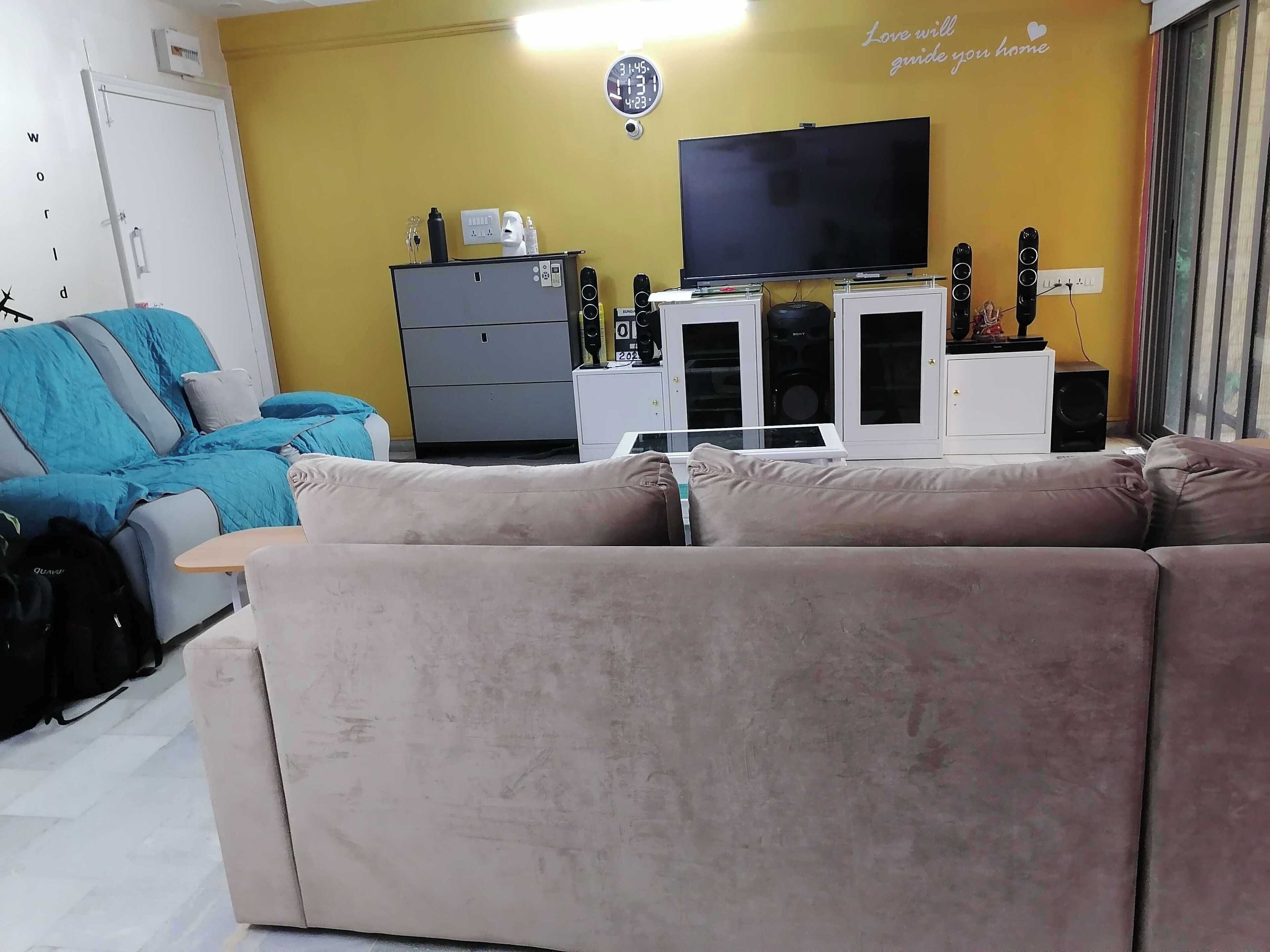 The shared living room is where we have 2 single BEDs + 1 Airbed OR Floor Mattress. Kitchen has RO water purifier, fridge and gas stove, where you can make yourself a tea / coffee / food.