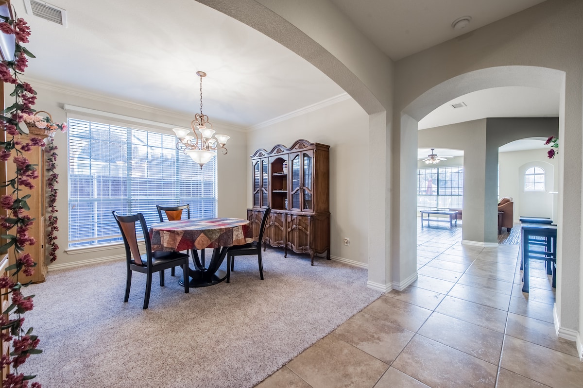 NEW LISTING! Large spacious home approx 4200 Sqft with 5 bedrooms and 3.5 bathrooms ideal for large families, business travels, special gatherings or weekend Getaways. Conveniently located just minutes from famous Allen Premium Outlets featuring 125 stores with collections of the finest brands at discounted prices. 30 miles away from Dfw airport, 25 miles to downtown Dallas, 10 miles to PGA of America HQ in Frisco; 12 miles to Dallas Cowboys World HQ and Practice Facility - The Star and 15 miles to Toyota Stadium home of FC Dallas Soccer