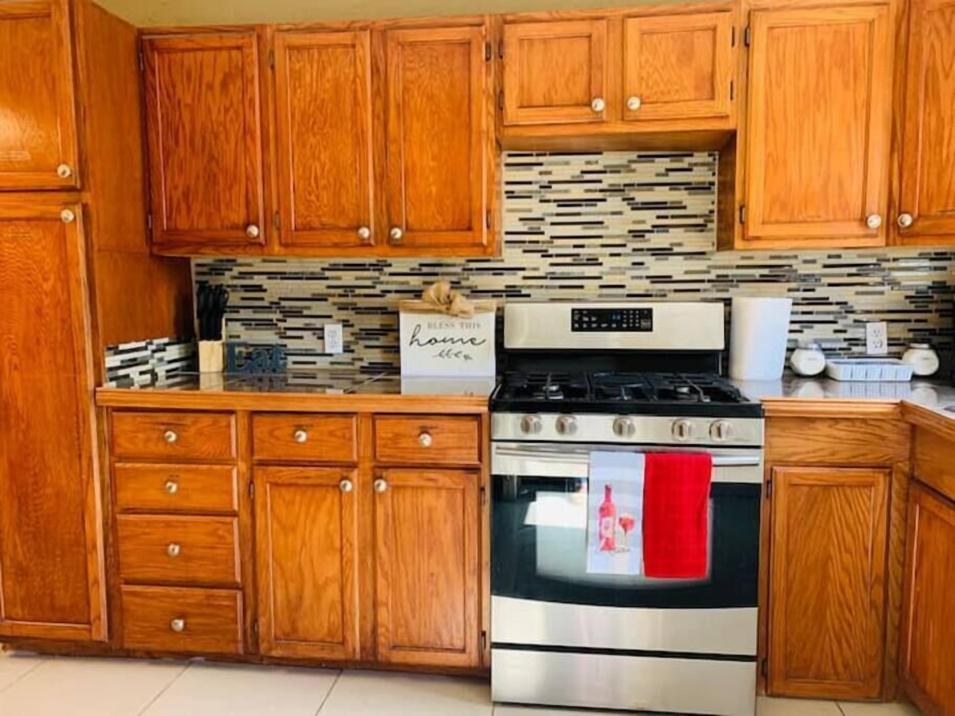 Featuring a garden, Spacious 4 Bedroom Home with 5 Beds near Interstate 40 in Amarillo, TX features accommodations in Amarillo. Providing complimentary private parking, the vacation home is a 19-minute walk from Austin Park. Guests can use a terrace. With free Wifi, this 3-bedroom vacation home provides a flat-screen TV, a washing machine, and a fully equipped kitchen with a dishwasher and oven. Towels and bed linen are provided in the vacation home. The accommodation is non-smoking. Rick Husband Amarillo International Airport is 8.1 miles away.