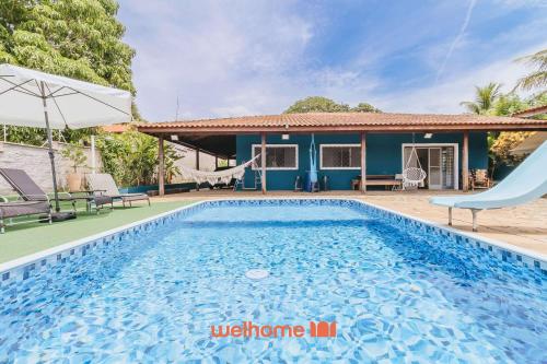 A casa acomoda até 8 hóspedes com praticidade e conforto.